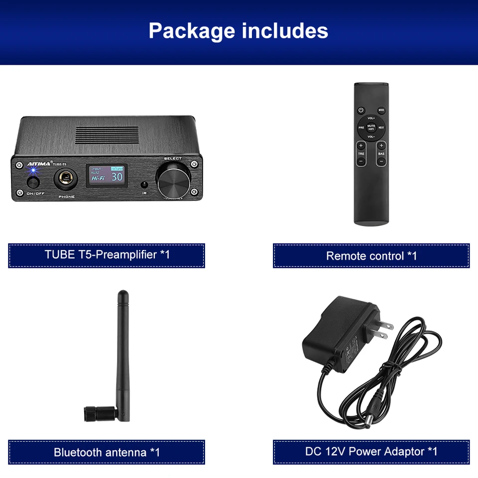1. С 4 виды аудио вход (Bluetooth / USB / RCA / AUX) и 2 виды выход (6,3 мм/3,5 мм для наушников), TUBE-T5 может использоваться не только как HiFi ламповый предусилитель, но также в качестве usb-декодера и усилителей наушников, высокая точность, Теплые, но динамичные сладкие звуки дают вам высокое качество прослушивания.