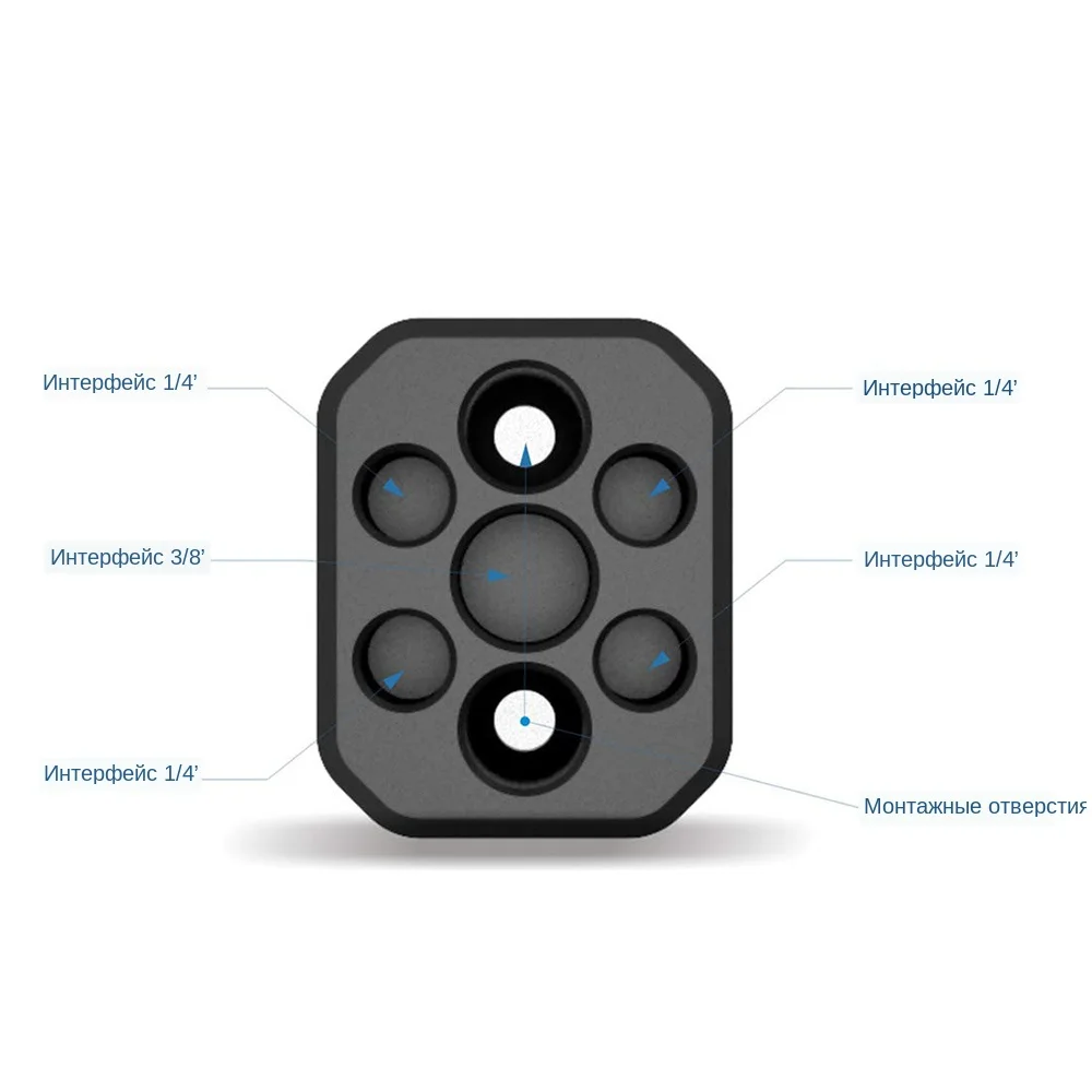 2. Несколько монтажных отверстий: 1/4 ~ $ резьба может быть прикреплена к другим аксессуарам, таким как Холодный башмак, кронштейн. 3/8; $ отверстия крепятся к аксессуарам с помощью штифтов.