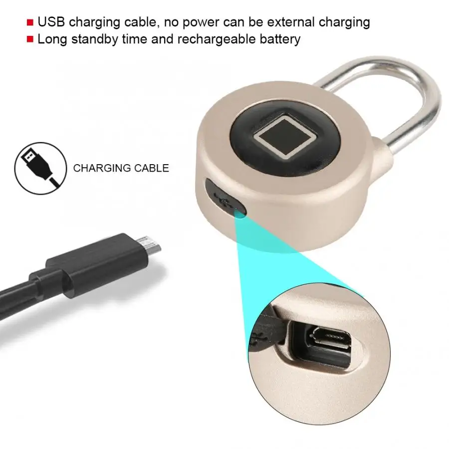 Умный перезаряжаемый телефон приложение отпечатков пальцев USB IP65 Водонепроницаемый замок