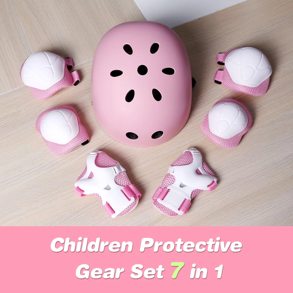 Один комплект включает в себя шлем, два наколенника, два налокотника и два запястья для защиты детей.