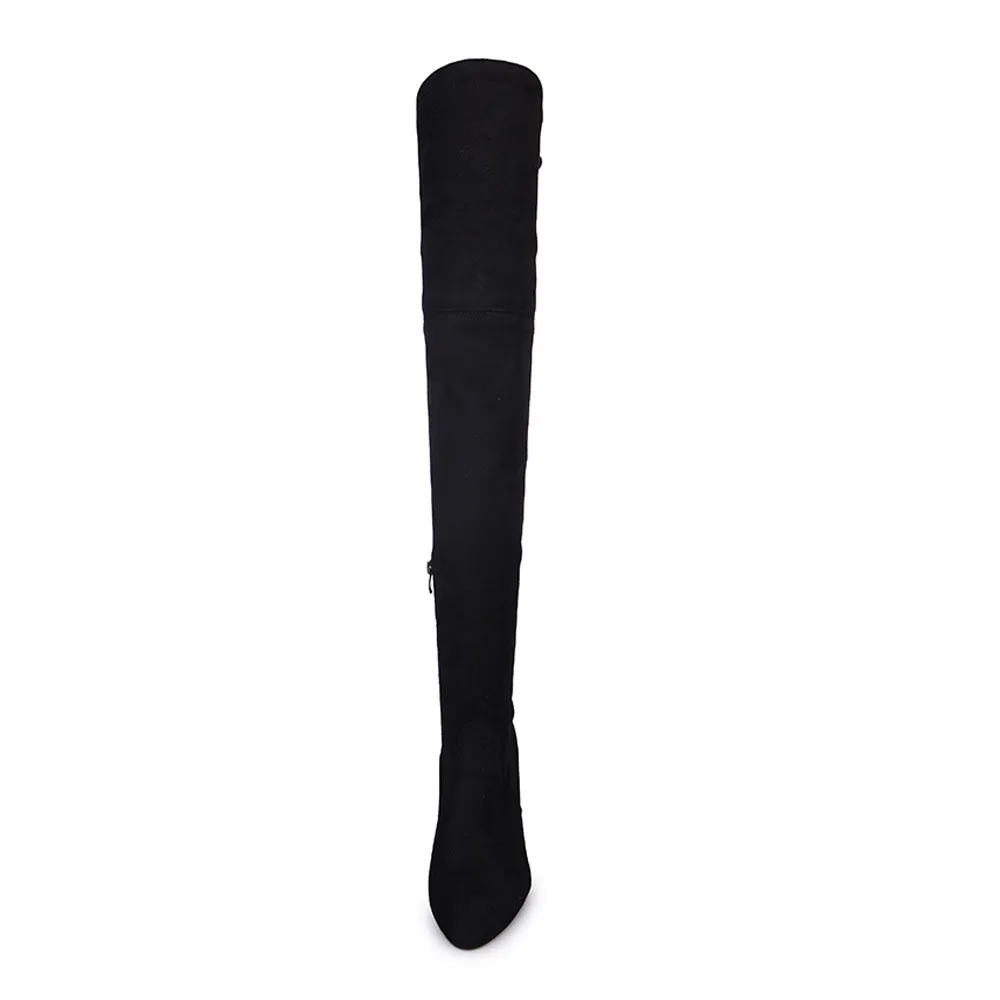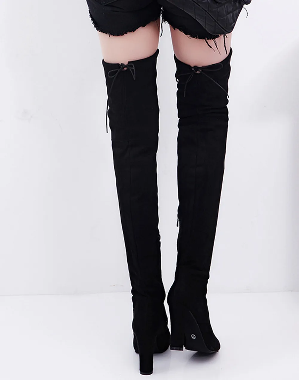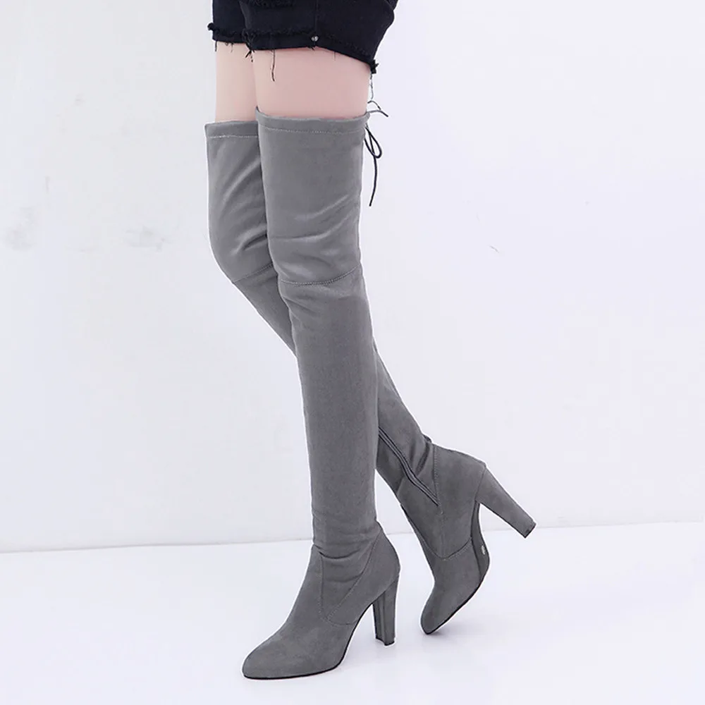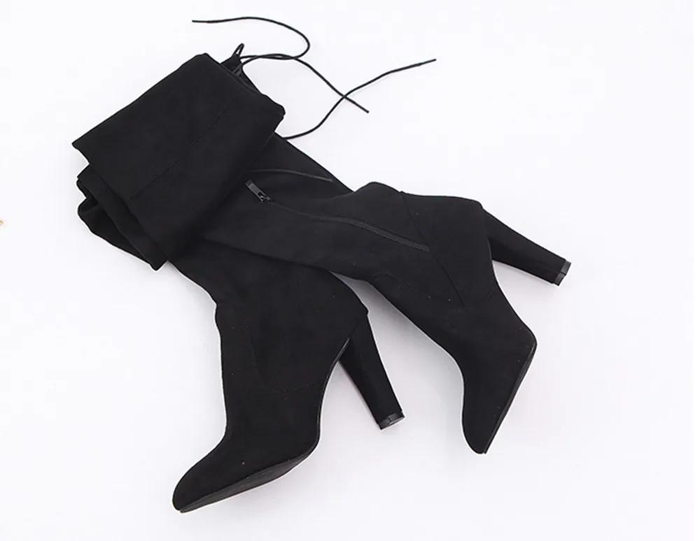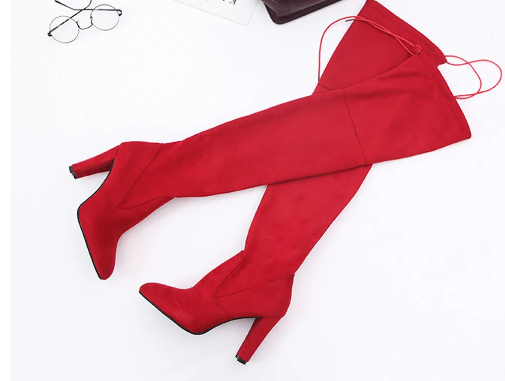 Для женщин Эластичные высокие сапоги из искусственной кожи; Сапоги выше колена; обувь на высоком каблуке