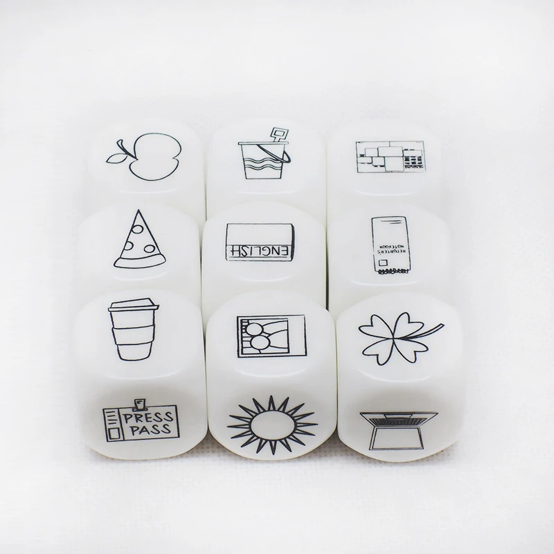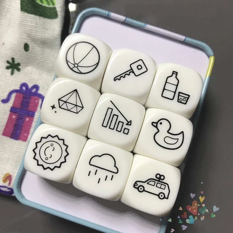 Особенности 1) посылка Размеры: 10 см * 14 см * 5 см 2) Вес: 280 г 3) Материал: акриловые кости 4) Вариант: 2 вида 5) Цвет: как на картинке 6) Упаковка: черная сумка 9 шт. игральная кость