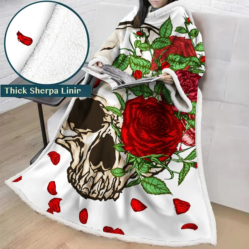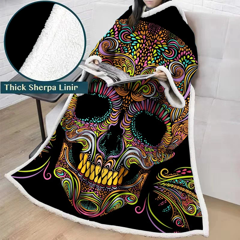 3D золотой череп цветы живопись шерпа одеяла для кроватей бархатное плюшевое одеяло с рукавом мягкие постельные принадлежности Манта на заказ теплые зимние одеяла (50 "* 70")