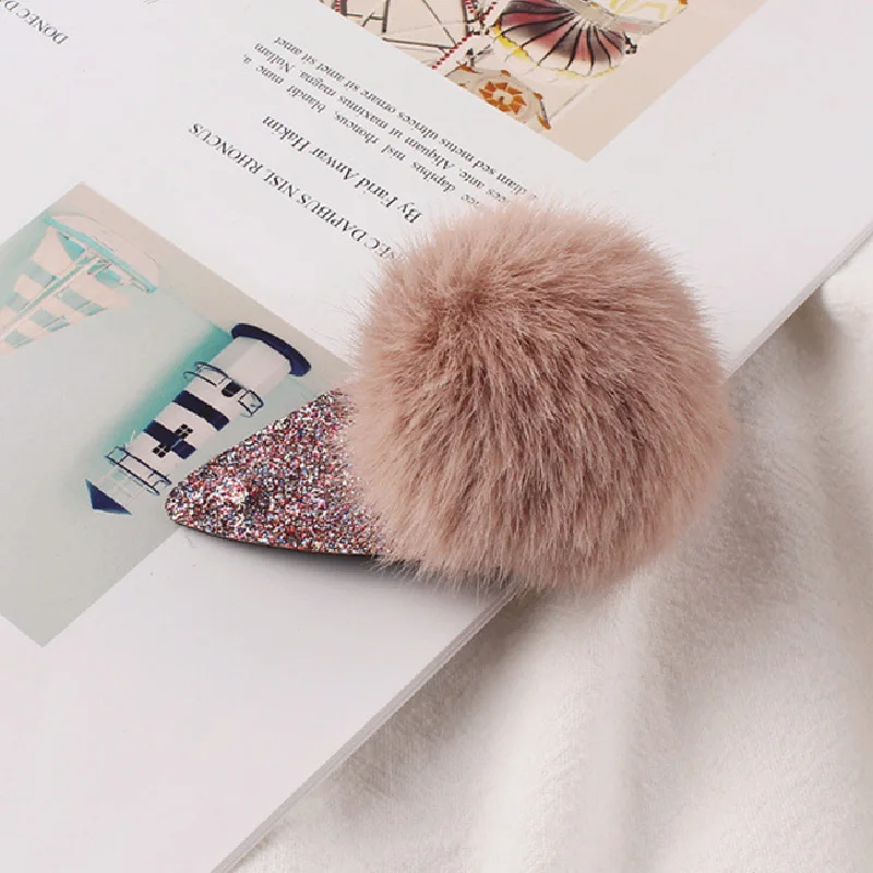 Мягкий помпон для волос из искусственного меха, заколка для волос, заколка для волос, аксессуары для волос для девочек