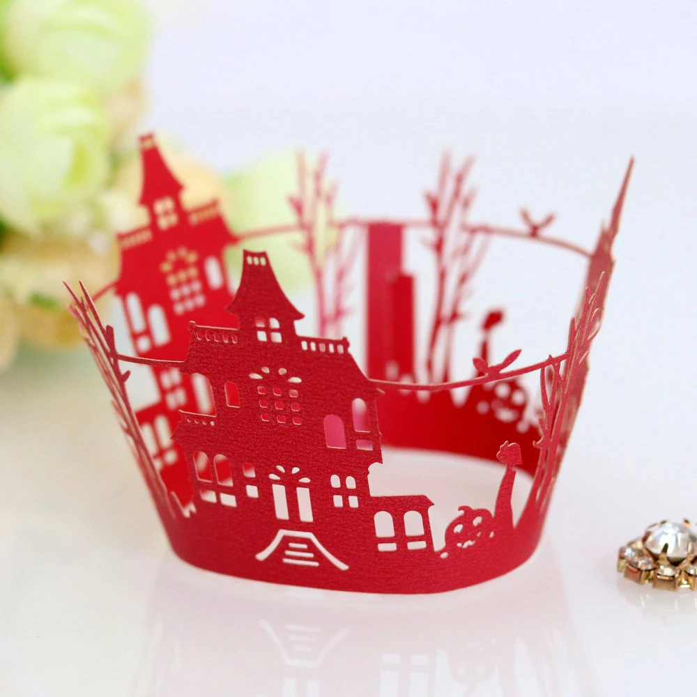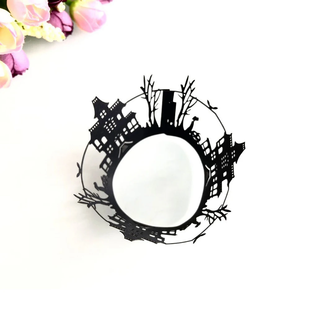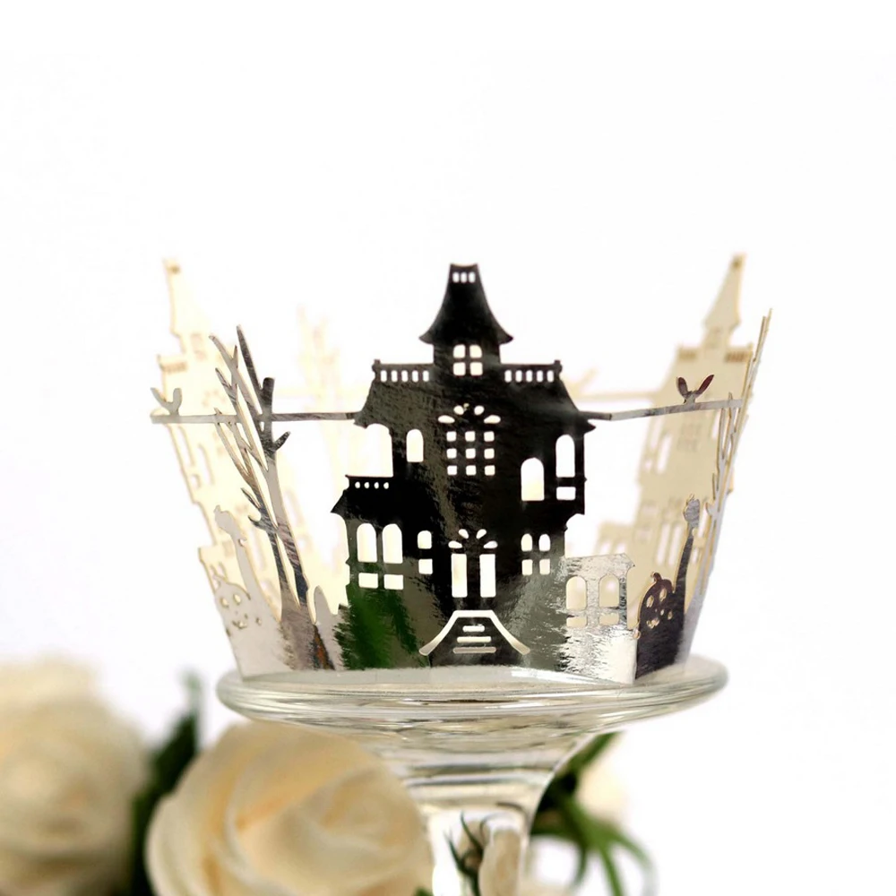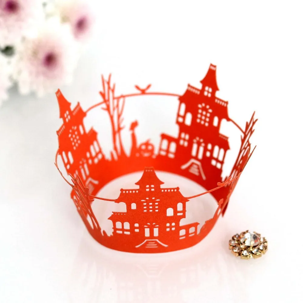 10 шт., обертка для кекса на Хэллоуин, чашка для выпечки, выдолбленная бумага, тыква, летучая мышь, торт, мусс, бумажное полотенце, кружево, ажурное кружево