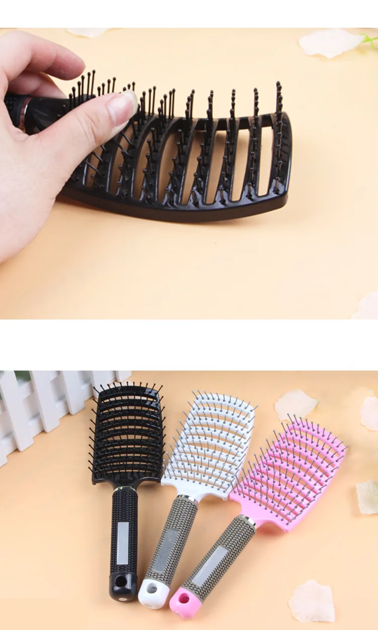 Эта Нейлоновая Щетка для волос быстро сохнет и легко моется. Нескользящая конструкция делает его резиновой ручкой удобно держать. Он может массировать голову во время расчески, почему бы не попробовать?