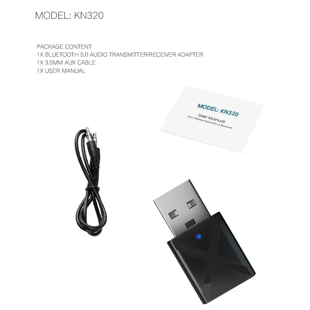 A) режим RX: имя сопряжения: KN320, найдите KN320 в настройках Bluetooth телефона для сопряжения. Синий светильник мигает во время процесса сопряжения, и синий светильник перестает мигать после успешного сопряжения. Подключите устройство к аудиоустройству с 3,5 аудио кабель.