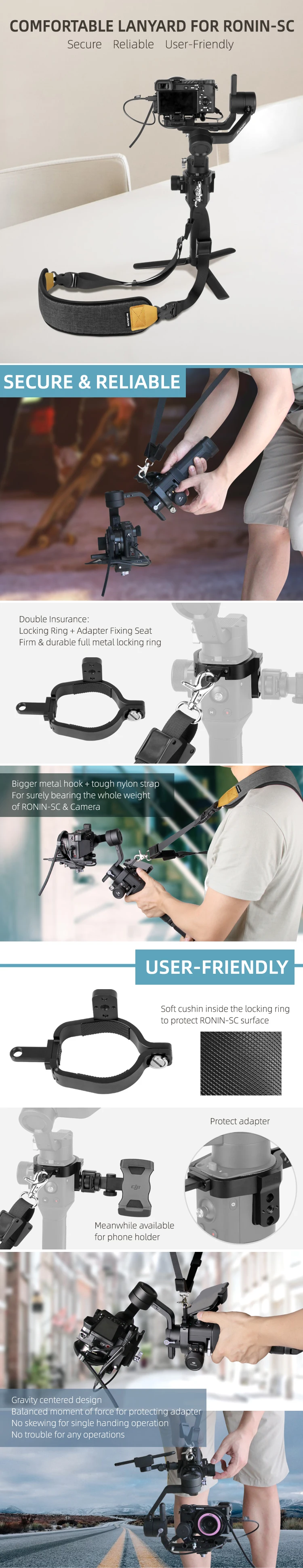 Описание: -Безопасный, надежный и удобный ремешок для RONIN- SC -Твердое и прочное полностью металлическое фиксирующее кольцо -Большой металлический крюк и жесткий нейлоновый ремешок для обеспечения полного веса вашего устройства -Мягкая подушка внутри фиксирующего кольца для защиты поверхности RONIN- SC -Регулируемая длина ремешка для разных высот, Диапазон длины: 55-74 см -Сетчатая ткань для хорошей воздухопроницаемости Технические характеристики: -Твердое и прочное полностью металлическое фиксирующее кольцо -Большой металлический крюк и жесткий нейлоновый ремешок для обеспечения полного веса вашего устройства -Мягкая подушка внутри фиксирующего кольца для защиты поверхности RONIN- SC -Регулируемая длина ремешка для разных высот, Диапазон длины: 55-74 см -Сетчатая ткань для хорошей воздухопроницаемости Посылка включает в себя: 1 * ремешок 1 * фиксирующее кольцо с винтом 1 * ключ, дюймовый стандарт 2 * M4 винты