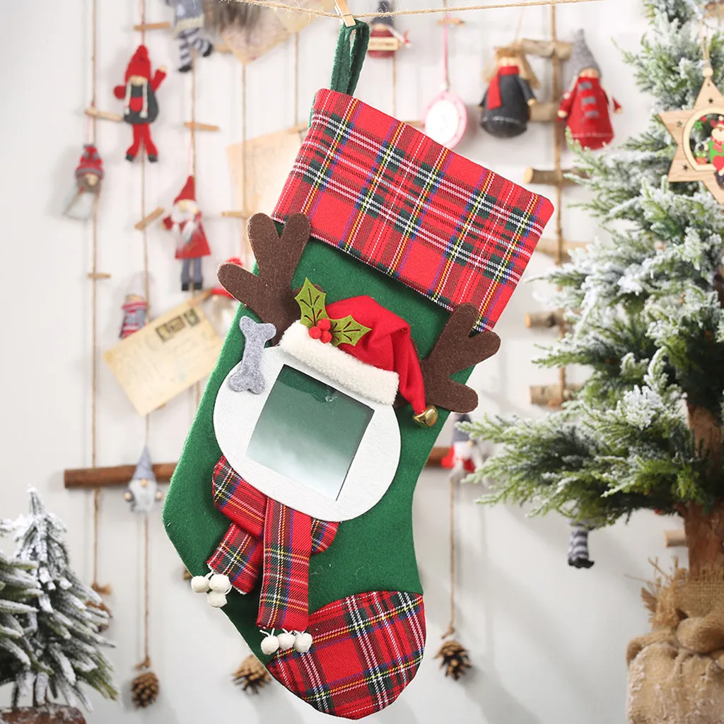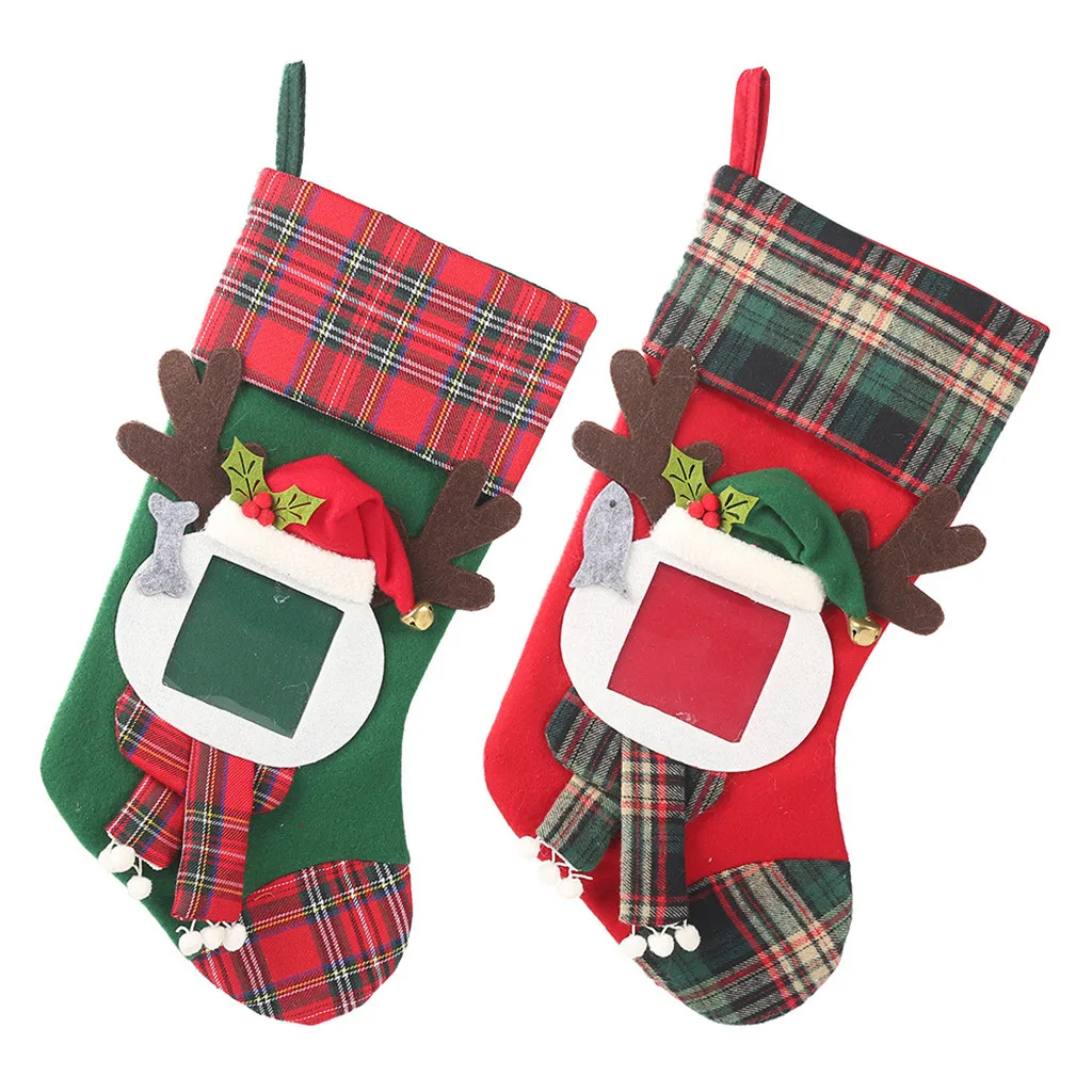 Рождественские гольфы, носки в клетку с Санта-Клаусом, большие гольфы, Подарочная сумка для конфет