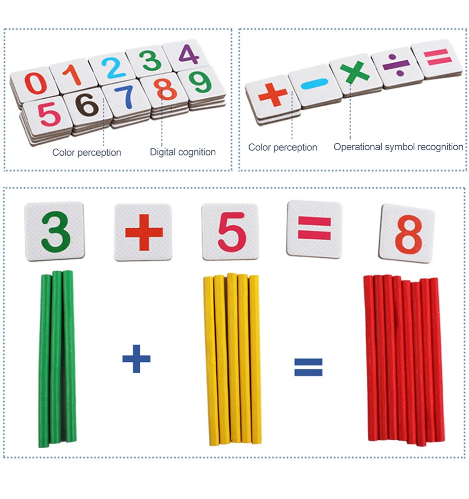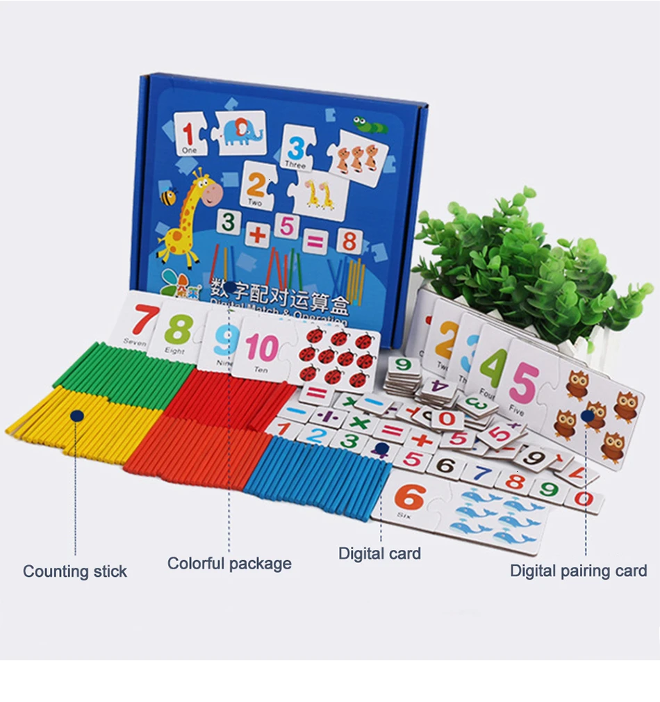 Особенности: 1. Счетные палочки изготовлены из высококачественной древесины (безопасная и экологически чистая краска). 2. Числовые карточки изготовлены из картона. 3. Интегрированная резка и формирование, безопасный без заусенцев 4. Напечатаны с наклейками высокой четкости. 5. Цифры распознавания, Кол-во в комплекте, числа, счёт палочки и цифровой Управление 6. Поймите концепция количества и основных познавательных познаний. 7. Игра во время обучения, рост с детьми