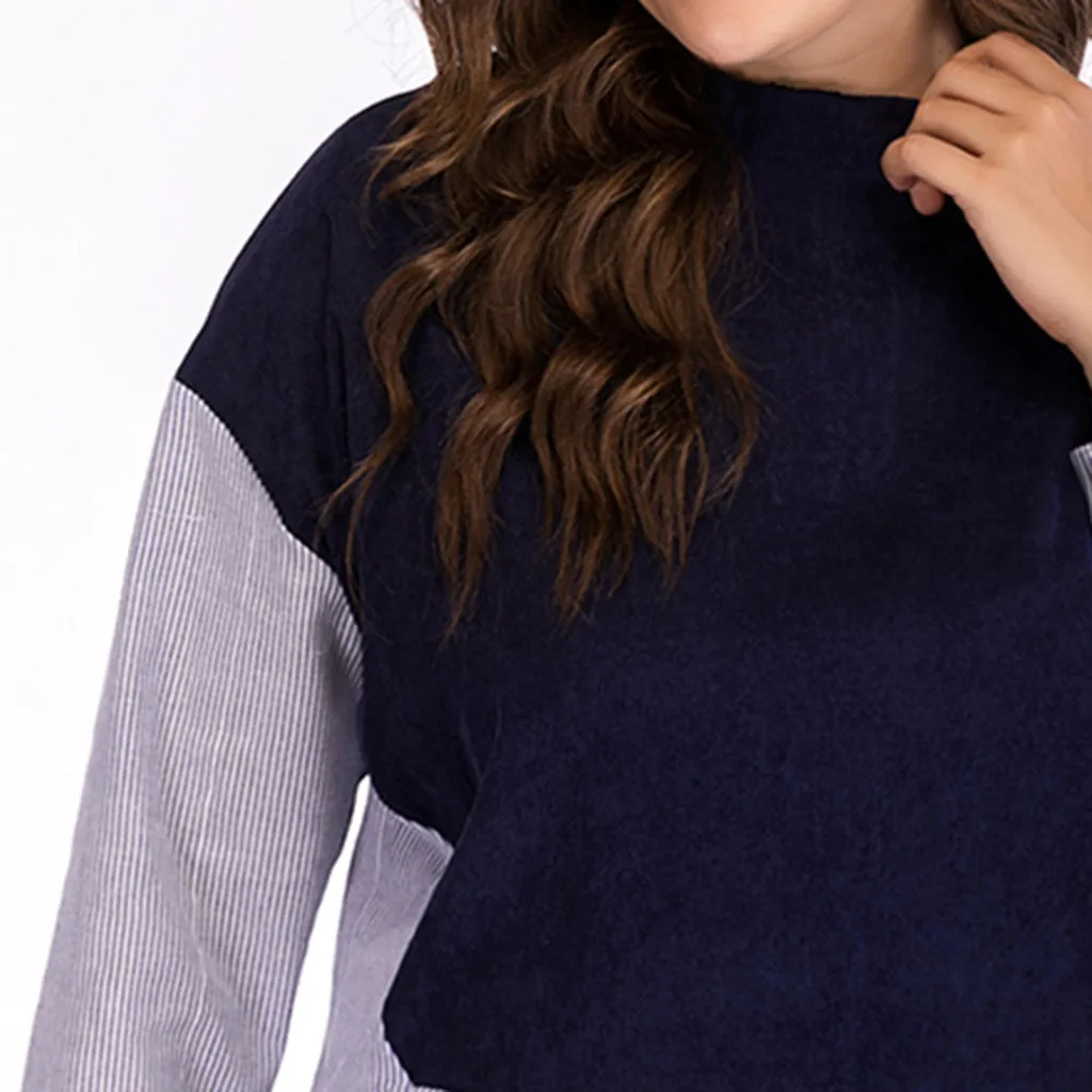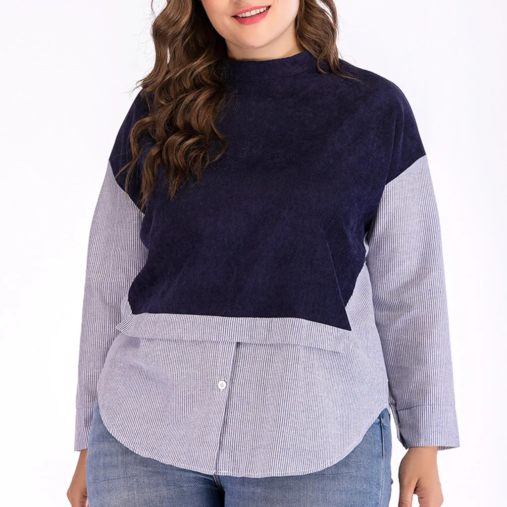 Женская Повседневная полосатая футболка размера плюс с длинным рукавом и круглым вырезом