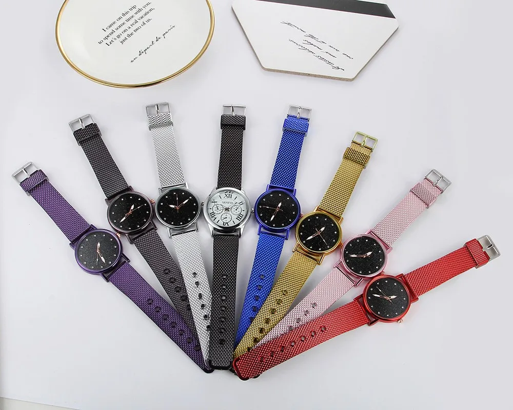 Силикон Имитационные наручные часы с ремешком-сеткой, визуально с металлической красотой сетчатого ремня, И комфортКожаПояс на ощупь, прекрасно сочетающий преимущества КожаПояс и сетчатый пояс