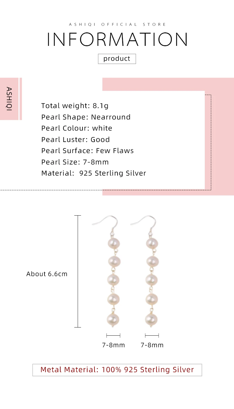 Бренд: ASHIQI Тип камня: натуральный пресноводный жемчуг Общий вес: 8,1 г Форма жемчуга: полукруглая Цвет жемчуга: белый Жемчужный Блеск: хороший Поверхность жемчуга: несколько недостатков Размер жемчуга: 7-8 мм Материал: 925 пробы-Серебристый Длина: около 6,6 см Упаковка: Подарочная сумка