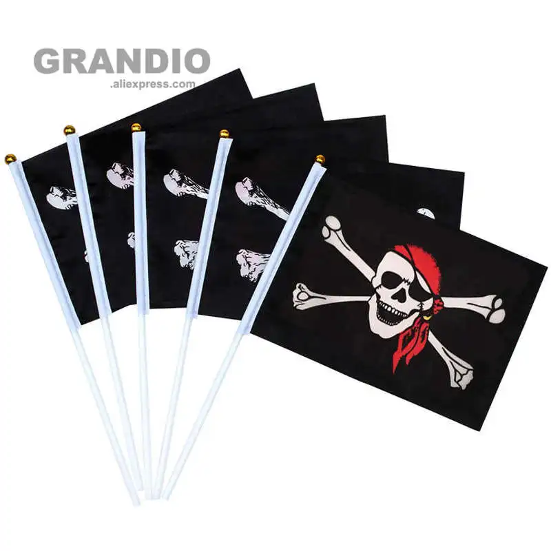 Материал Флаг: полиэстер Флагшток: пластик Дизайн Пират Размер Флаг: approx.14x21cm Флагшток: прибл. Диам. 5 мм и длина 30 см Посылка Термоусадочная пленка и полиэтиленовый пакет Уведомление Пожалуйста, учитывайте некоторую разницу в цвете и погрешность в размере.
