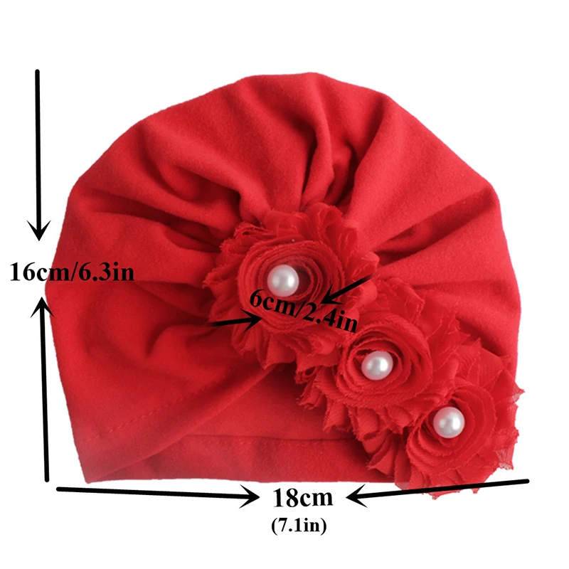 Детская Хлопковая шапочка с жемчугом и тремя цветами для новорожденных, однотонная мягкая шапка в индийском стиле