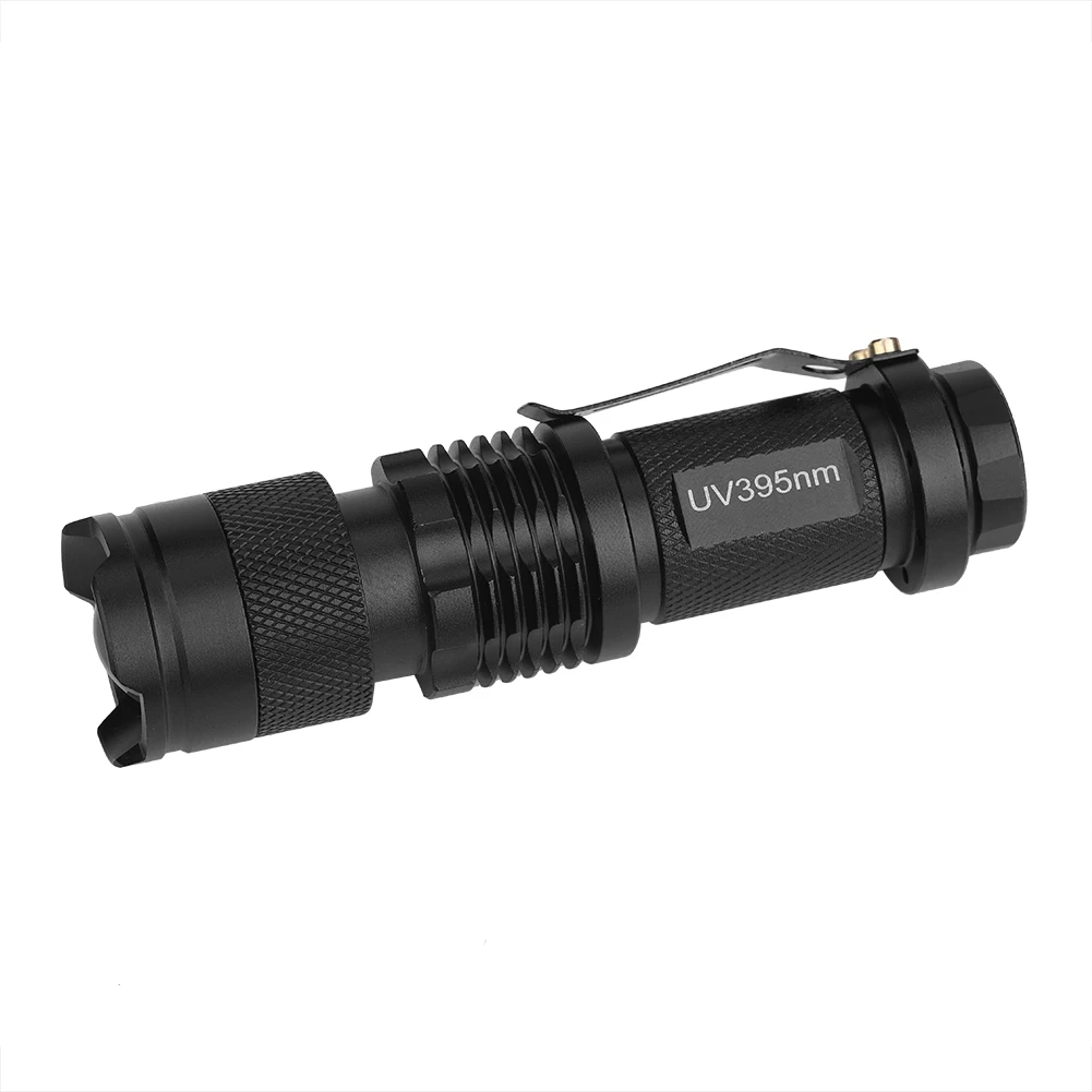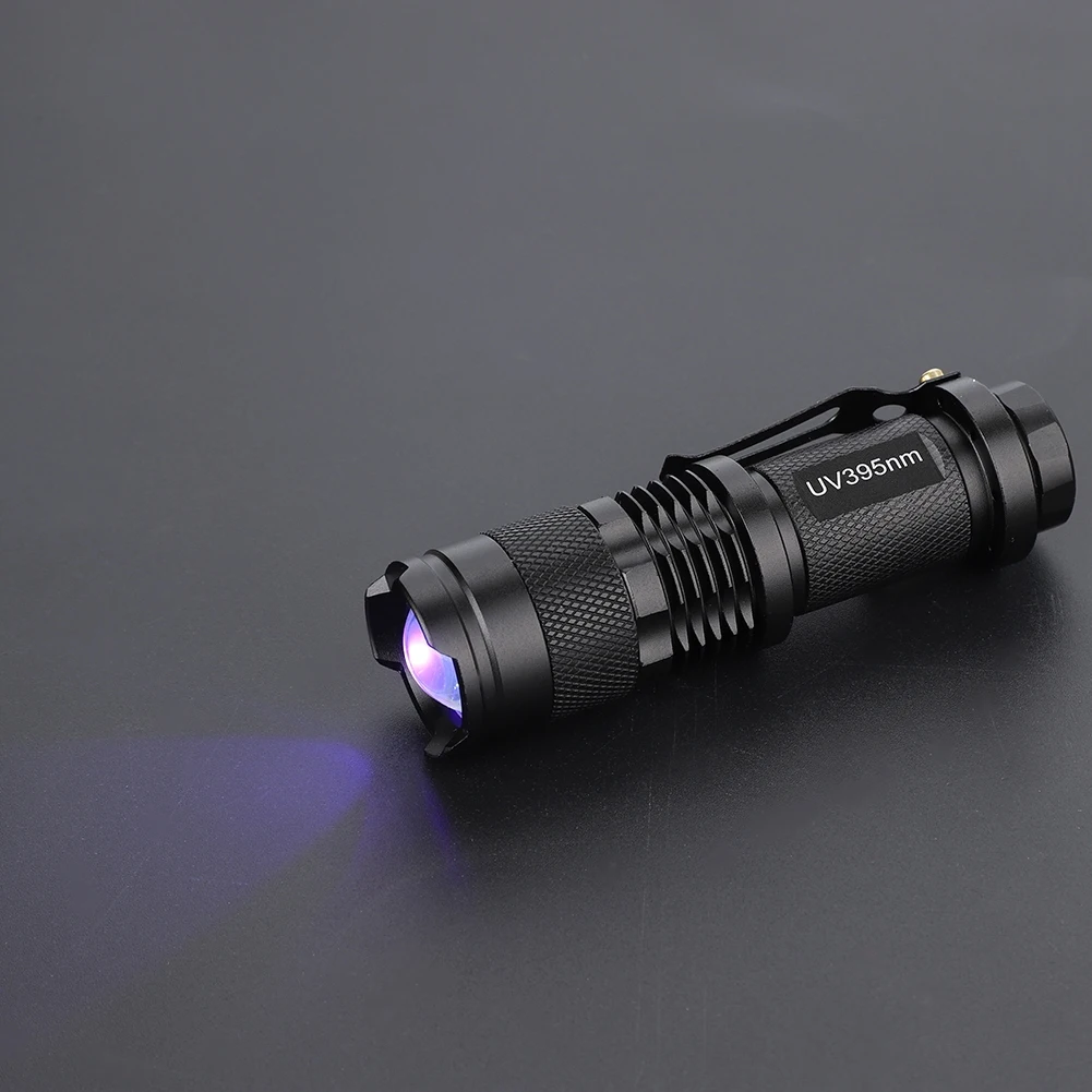 Светодиодный фонарик UV blacklight. Простота в использовании и эксплуатации: просто нажмите кнопку ВКЛ/ВЫКЛ. Идеально подходит для хранения одного в рюкзаке, автомобиле или ящике для инструментов. Различные длины волн, использование обнаружения отличается. На 365нм меньше, чем на 395нм, чем на более коротком, проникновения выше. Отлично подходит для проверки купюр, кредитных карт, флуоресцентных чернил (невидимых чернил), треснутой посуды. Подходит для дома, Походов, Кемпинга, путешествий, охоты и других видов активного отдыха.