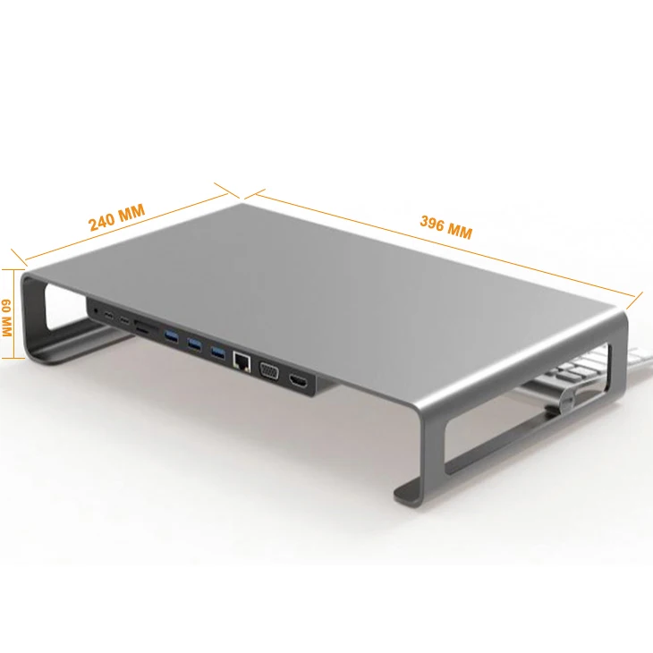 Хороший дизайн подставки для монитора с USB C многопортовой док-станцией является ядерным оружием для использования компьютеров в повседневной работе вашей повседневной работы, независимо от того, дома или в офисе 11 в 1 USB C док-станция с монитором стояком | TYPE-C Алюминиевая Подставка для монитора Для IMAC , IMAC PRO Изготовитель: # whymslforce Номер модели:.UC3208 Док-станция USB C с USB-C/M на HDMI/F + VGA/F + аудио/F + 3 * USB3.0A/F + RJ45/F + SD/F + T/F + USB-C/F (мощность) + USB-C/F (данные)