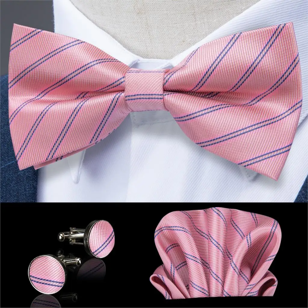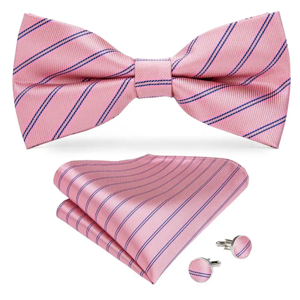 Розовый Полосатый шелковый галстук-бабочка для мужчин, классический свадебный галстук-бабочка, платок, запонки, набор галстуков, мужской галстук, DiBanGu, JM-128