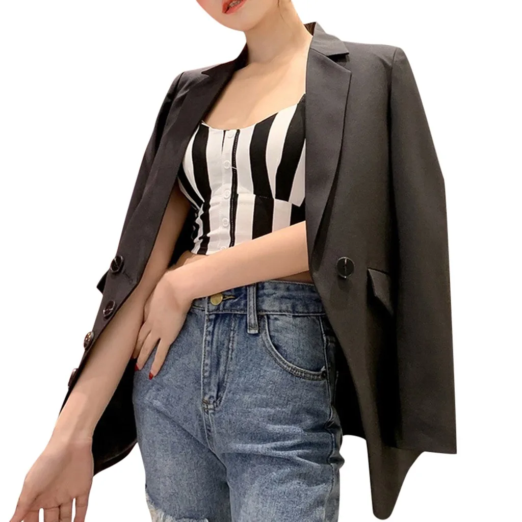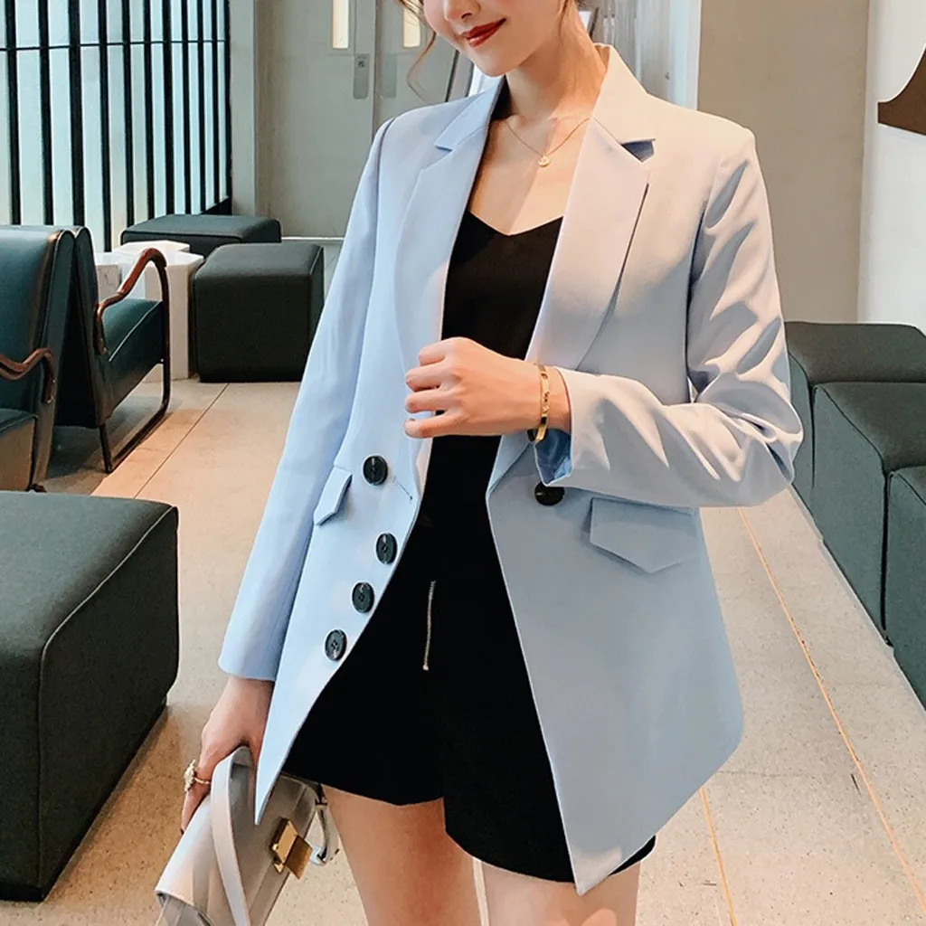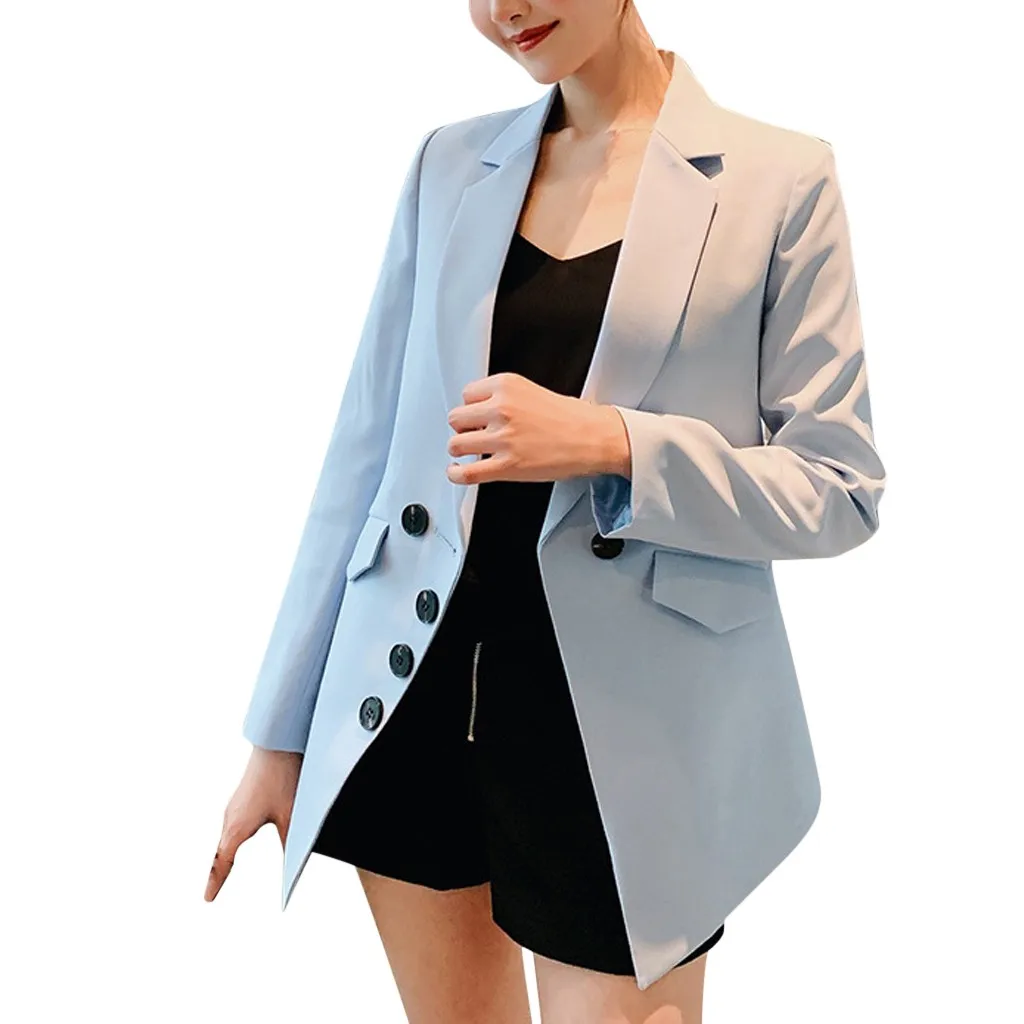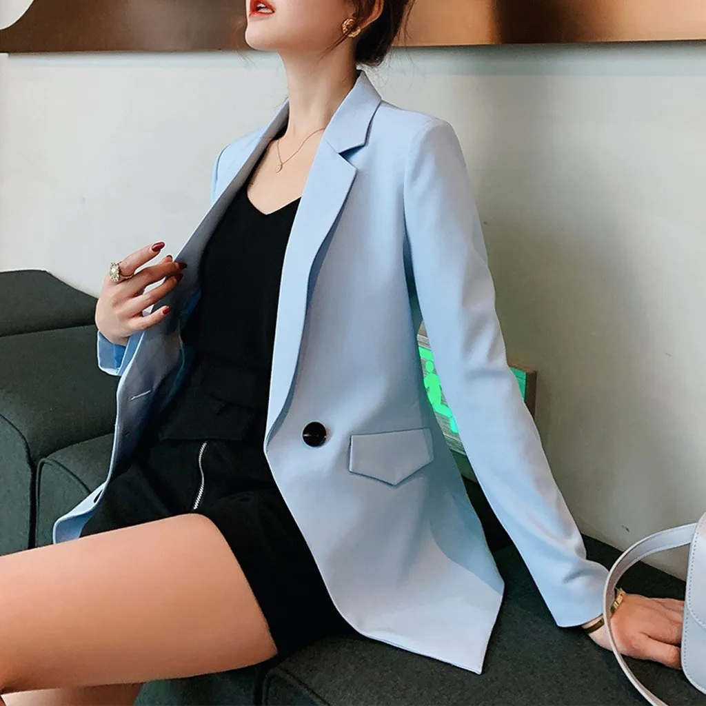 Мода женщин бизнес Топ Кнопка лацкане с длинным рукавом костюм блузка Свободное пальто