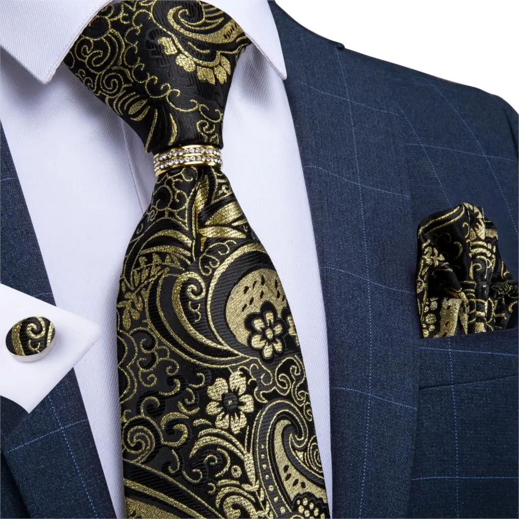 Мужской галстук золотого и черного цвета с узором пейсли, свадебный галстук для мужчин, шелковый галстук, набор галстуков, Hanky, запонки, DiBanGu, деловой JZ03-7023