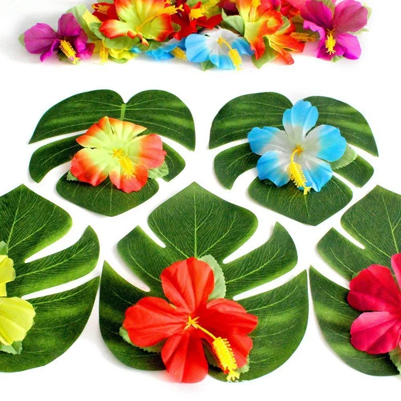 Наши цветы гибискуса толще и не легко отрывающаяся, а тропические Пальмовые Листья изготовлены из высококачественного тканевого материала, экологически чистые, прочные и многоразовые