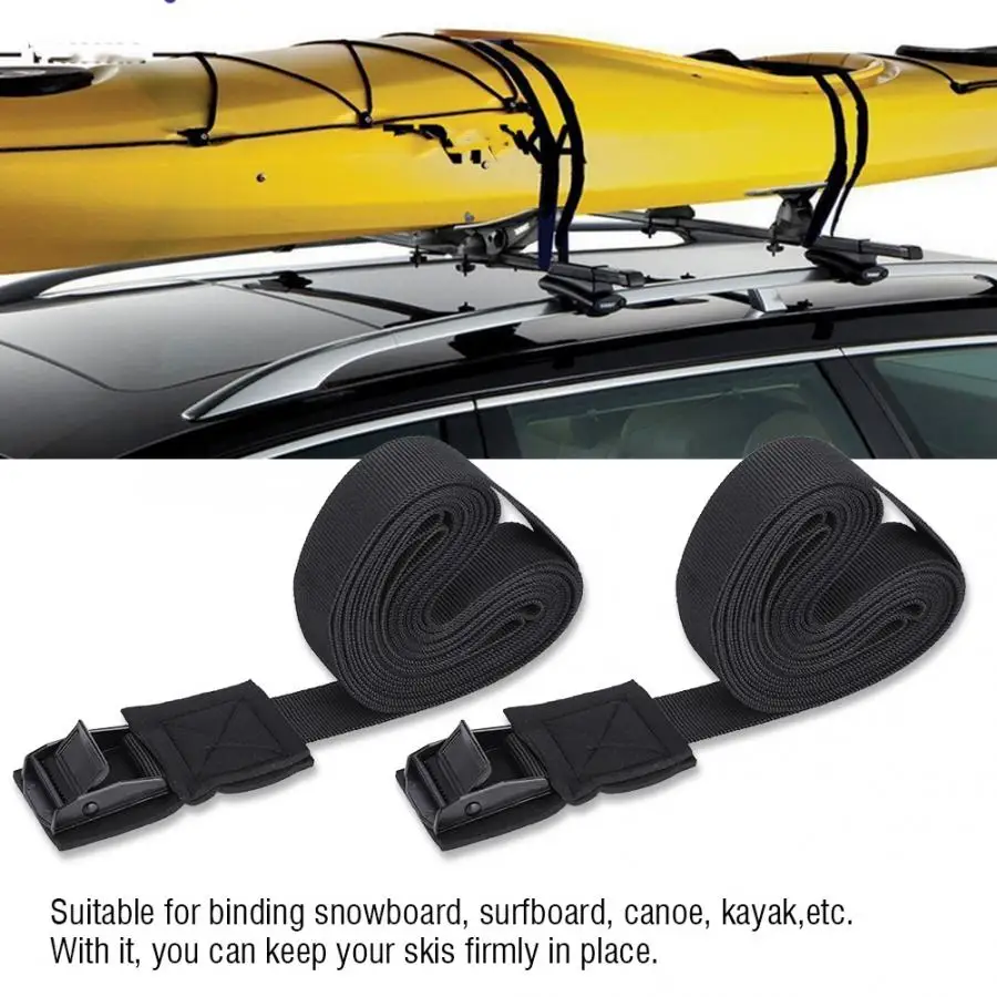 Изготовлен из качественной полиэфирной ленты с высокой прочностью. С ним вы можете надежно держать ваши лыжи на месте. Оцинкованный металлический замок камеры и более острые и длинные шипы могут предотвратить скольжение. Подходит для крепления сноуборда, доски для серфинга, каноэ, Каяка и т. д. Легкий вес, легко носить с собой.2 * плечевой ремень