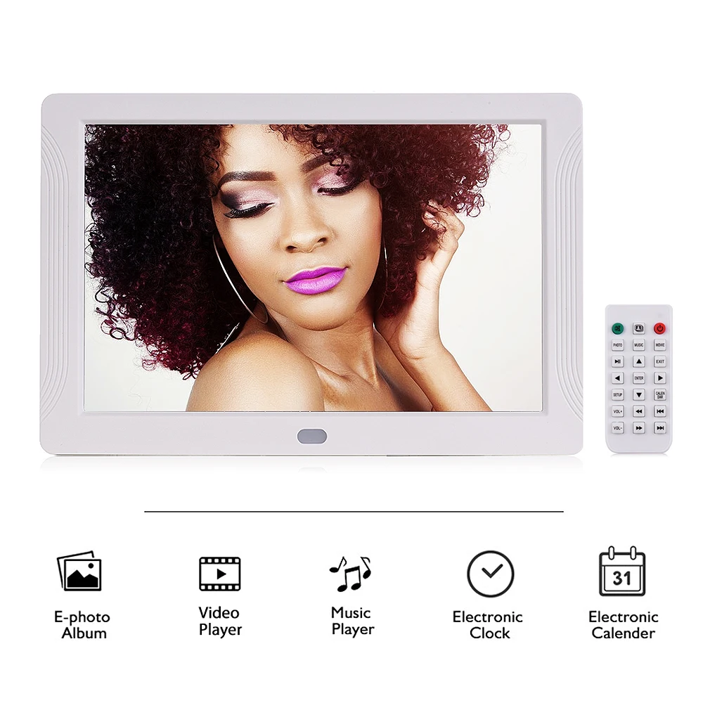 7 дюймов мини светодиодная цифровая фоторамка, 1280*800 с высоким разрешением, 16:9 экранная шкала и 220cd/m2 яркость, vivid фото и видео, повторное появление прекрасные моменты с вашими детьми, семьей и друзьями.