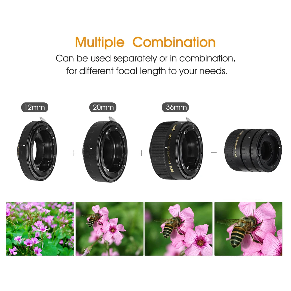 Удлинительные трубки предназначены для того, чтобы ваши линзы могли сфокусироваться ближе, чем обычные установочные Минимальное расстояние фокусировки, улучшая эффект макросъемки.
