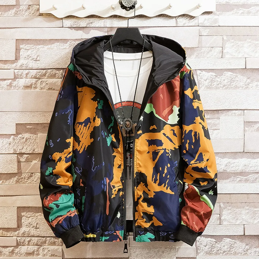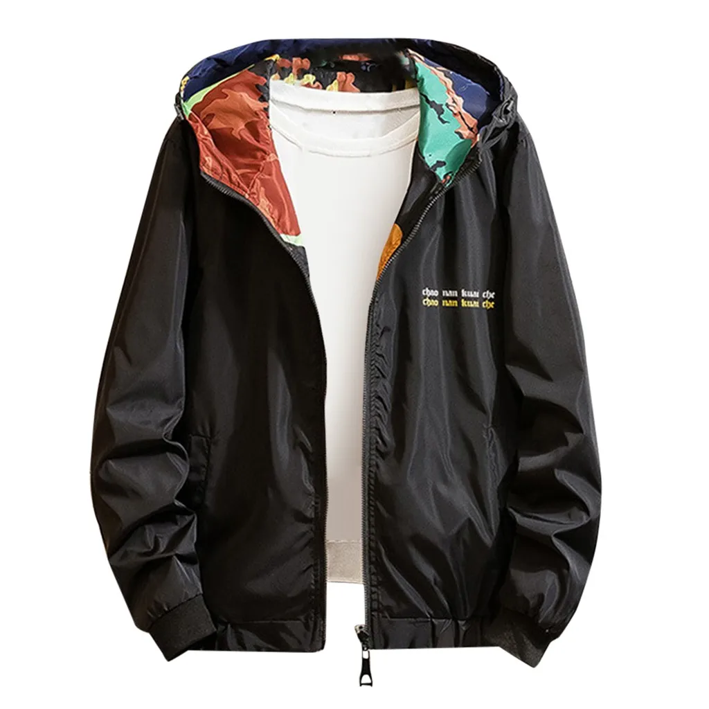 Мужская Осенняя Повседневная модная камуфляжная толстовка с капюшоном, Двусторонняя одежда, тонкое пальто