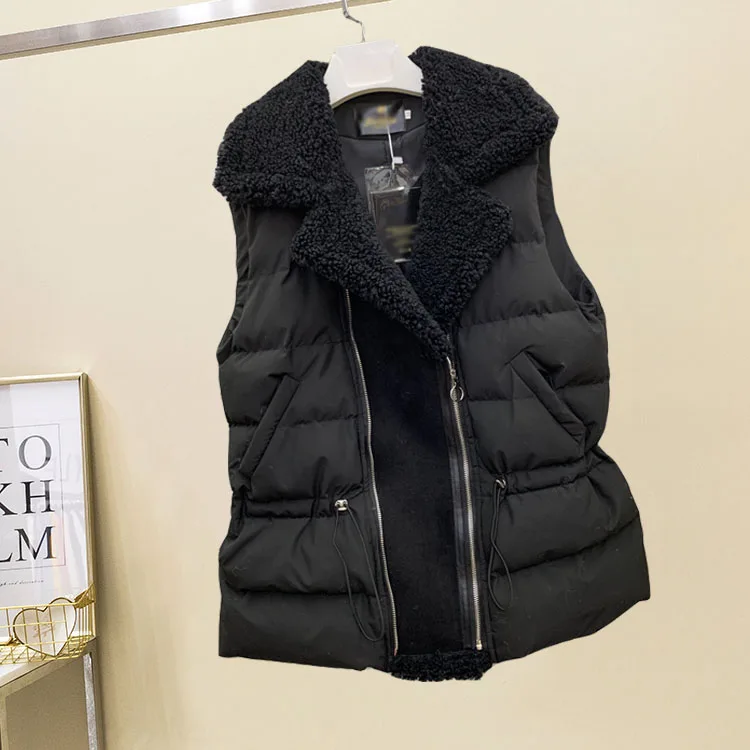 Новинка зимы 2020, корейский жилет на молнии, Женский Модный хлопковый жилет составного кроя с поясом из овечьей шерсти, Женская куртка
