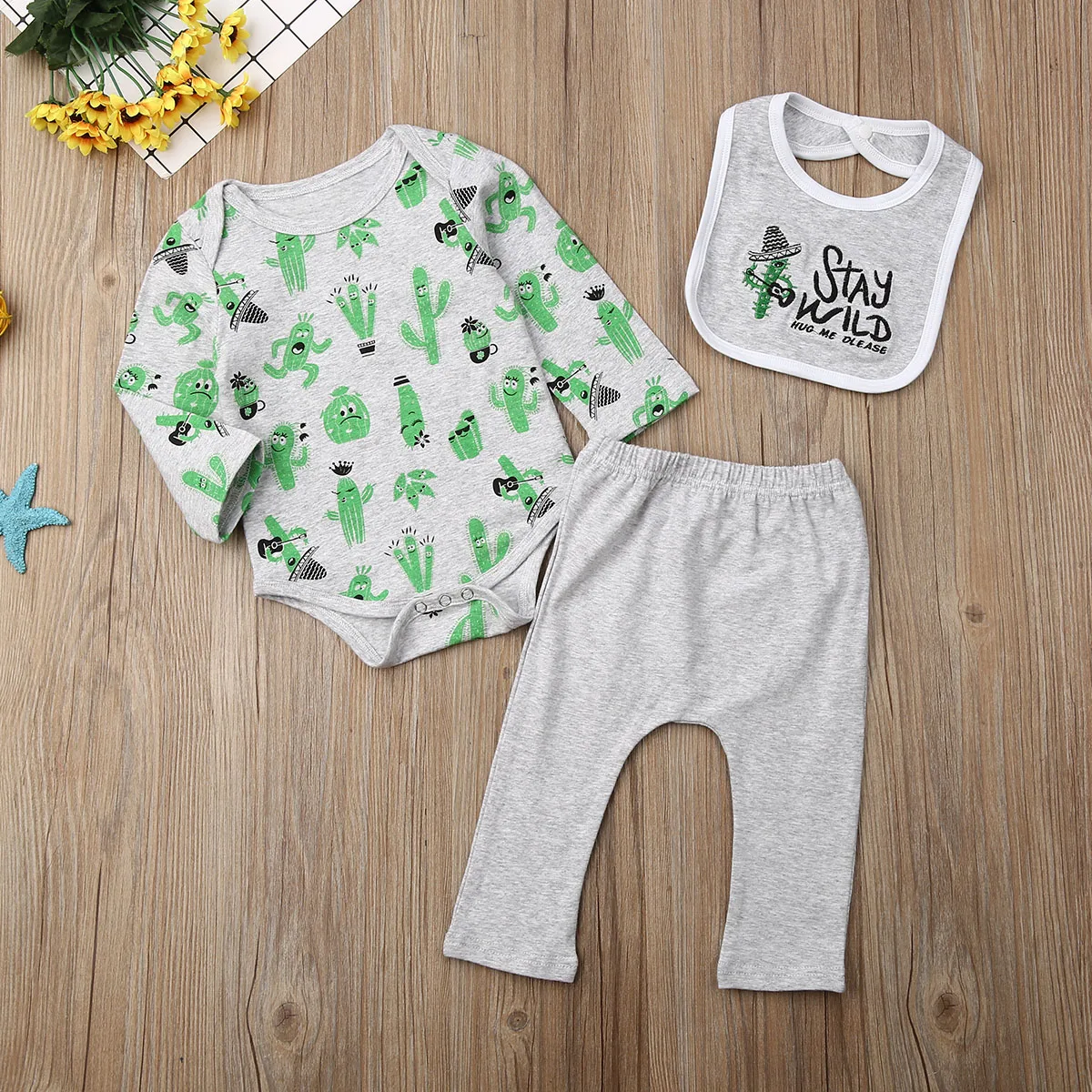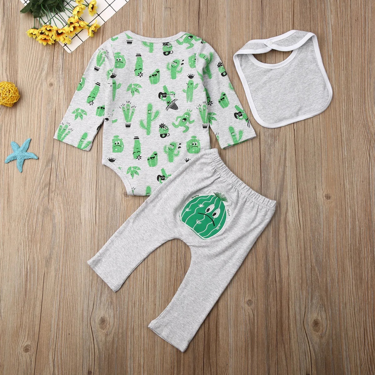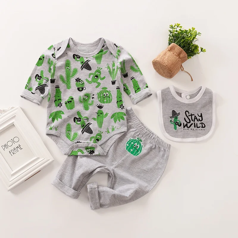 Комплект из 3 предметов; Одежда для новорожденных девочек с изображением кактуса; комбинезон; боди; комплекты со штанами
