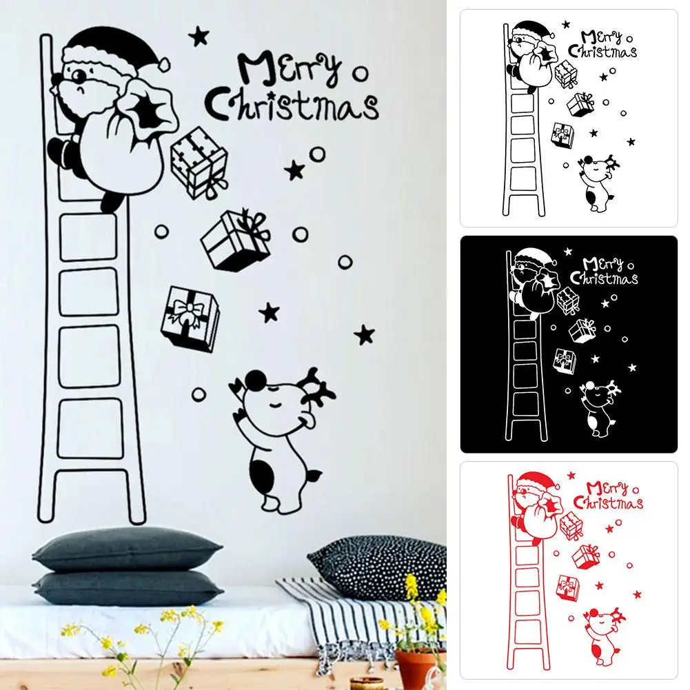 Merry Christmas стикер на стену Санта лестница для лазания красный белый черный для витрин дверной фон Рождество Новый год стикер на стену