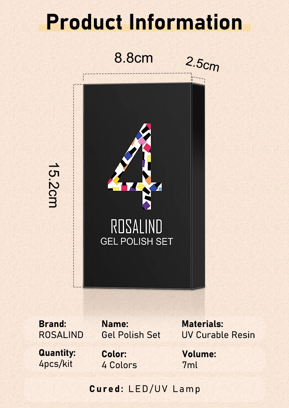 ROSALIND Гель-лак для ногтей 6 шт. набор гибридных лаков все для маникюра Платиновый Гель-лак УФ светодиодный лак 7 мл набор для ногтей и набор базовый топ