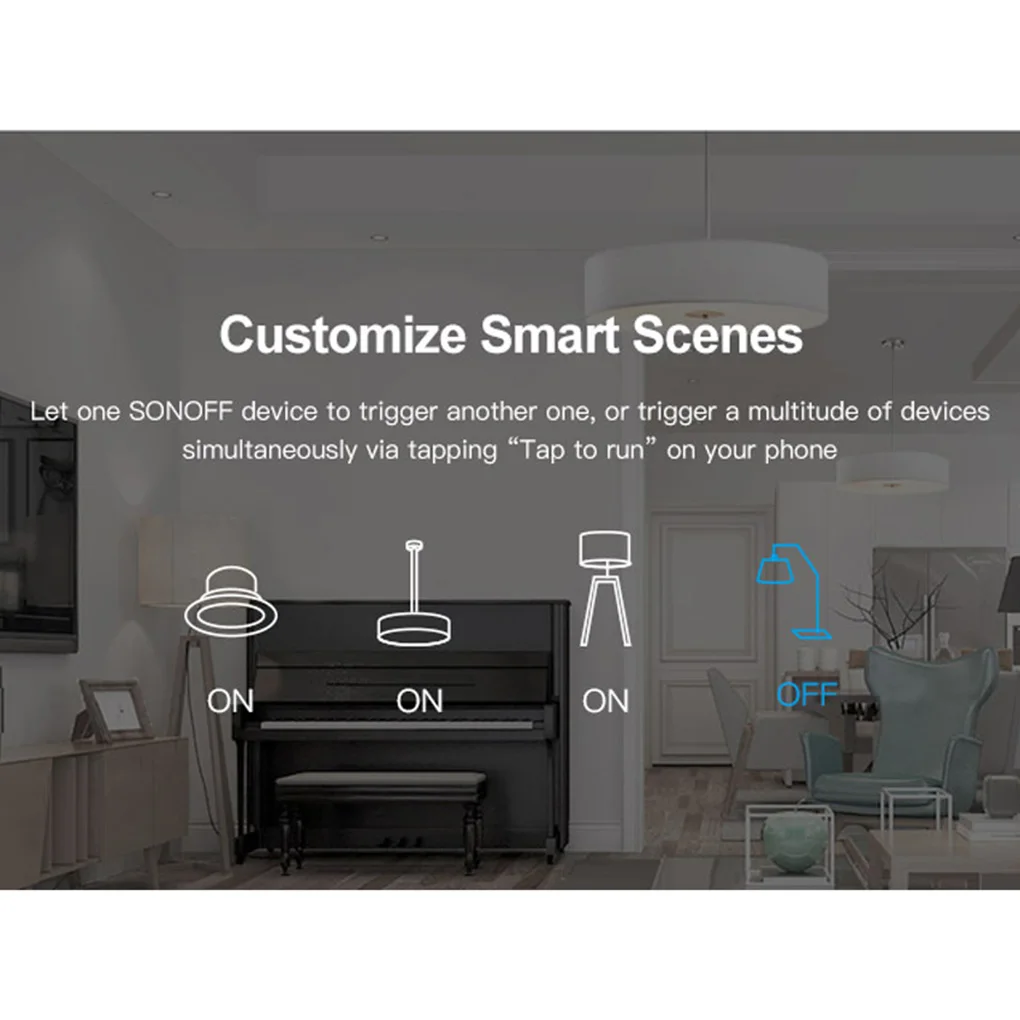 Создавайте интеллектуальные сцены для включения/выключения групп устройств SONOFF с помощью нажатия на телефон.
