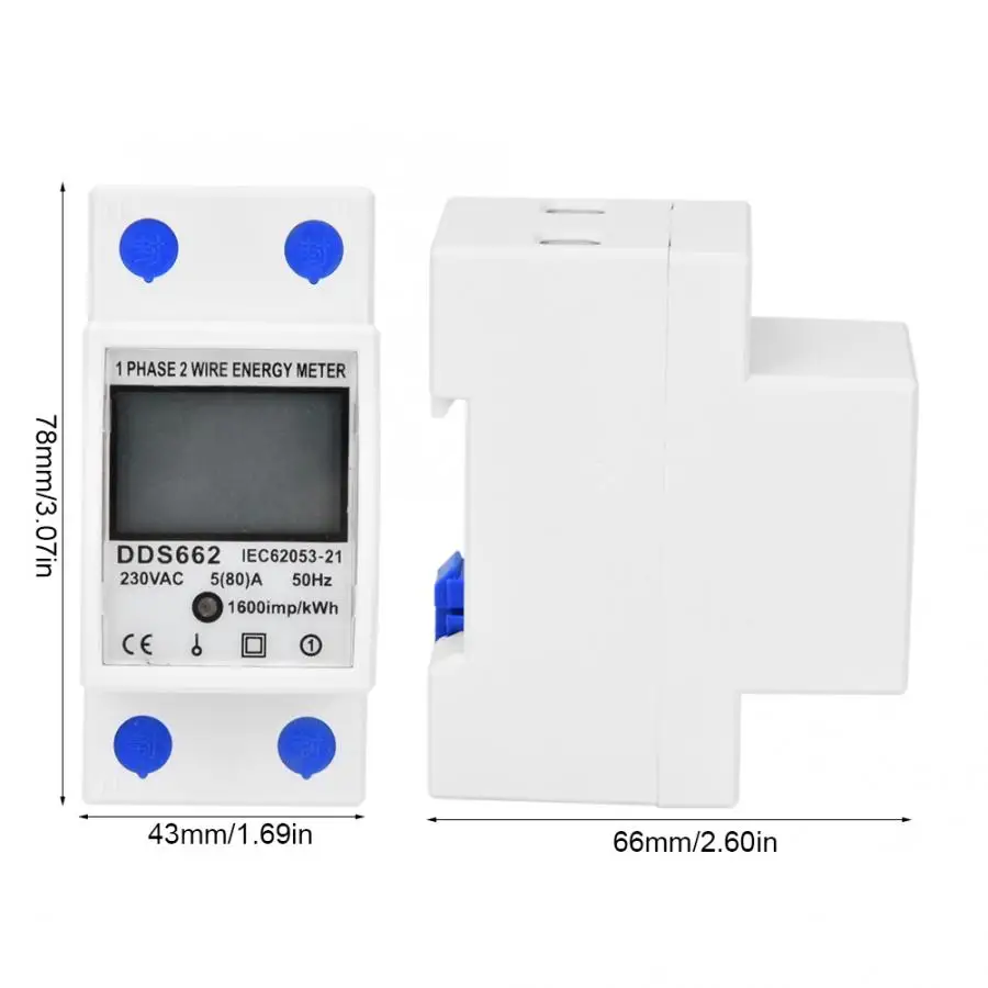Цифровой счетчик энергии хорошая надежность ЖК-дисплей однофазный din-рейка 230VAC 5(80)A 50Hz