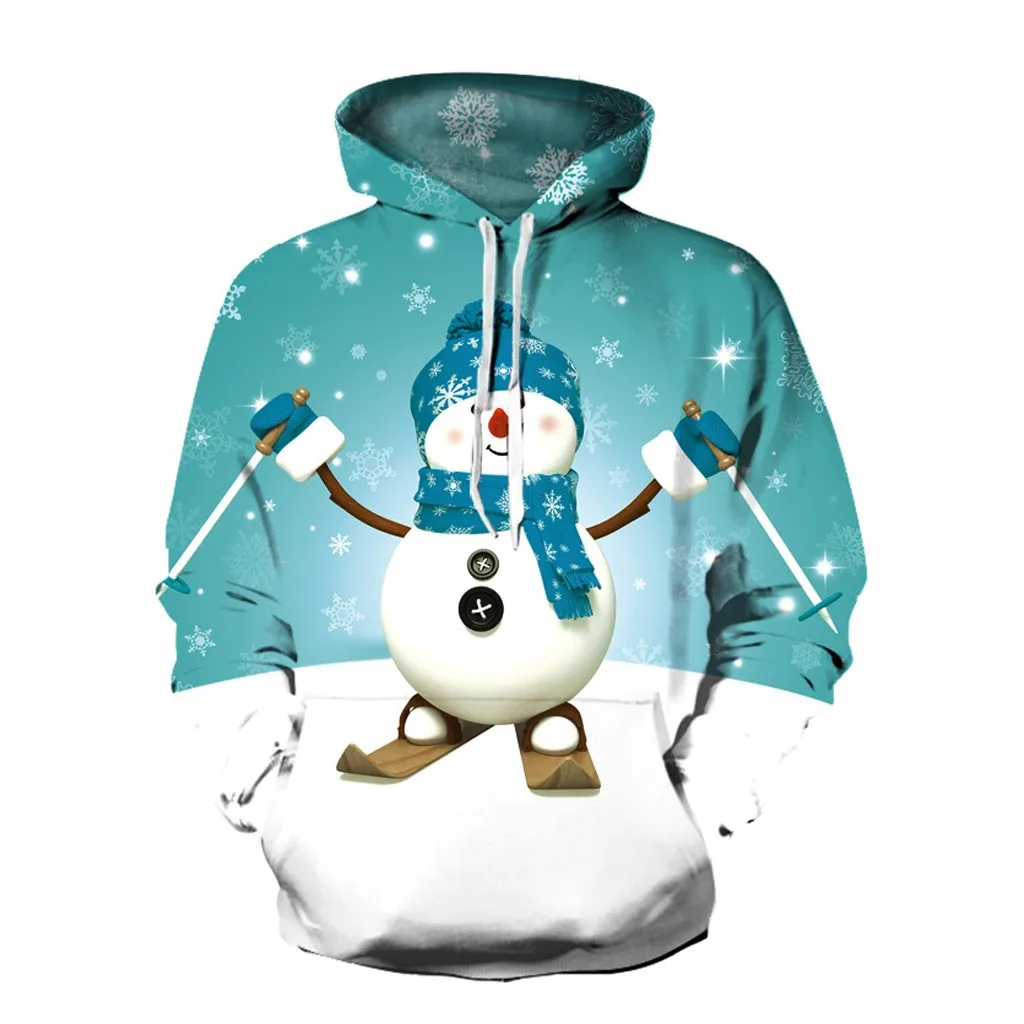 Модные женские свободные длинные рождественские топы с принтом снеговика