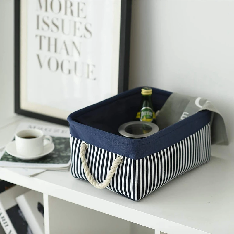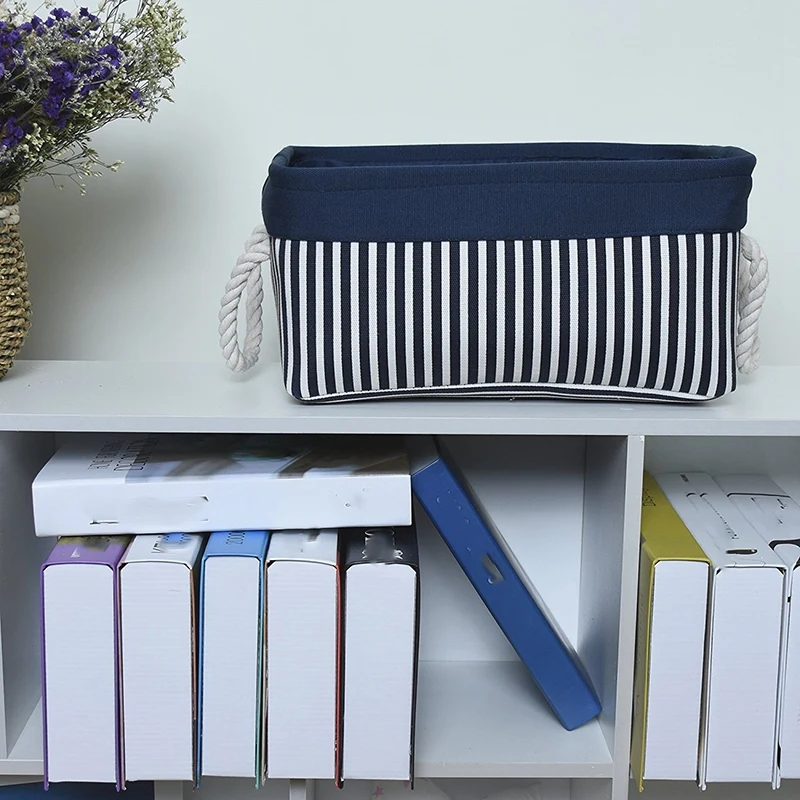 Этот морской Материал корзины для хранения изготовлен из 3 слоев, 100% холст + EVA внутренняя + подкладка с льняной внутренней и проволочной рамкой для стабильности, чтобы сохранить свою форму даже когда пустая.