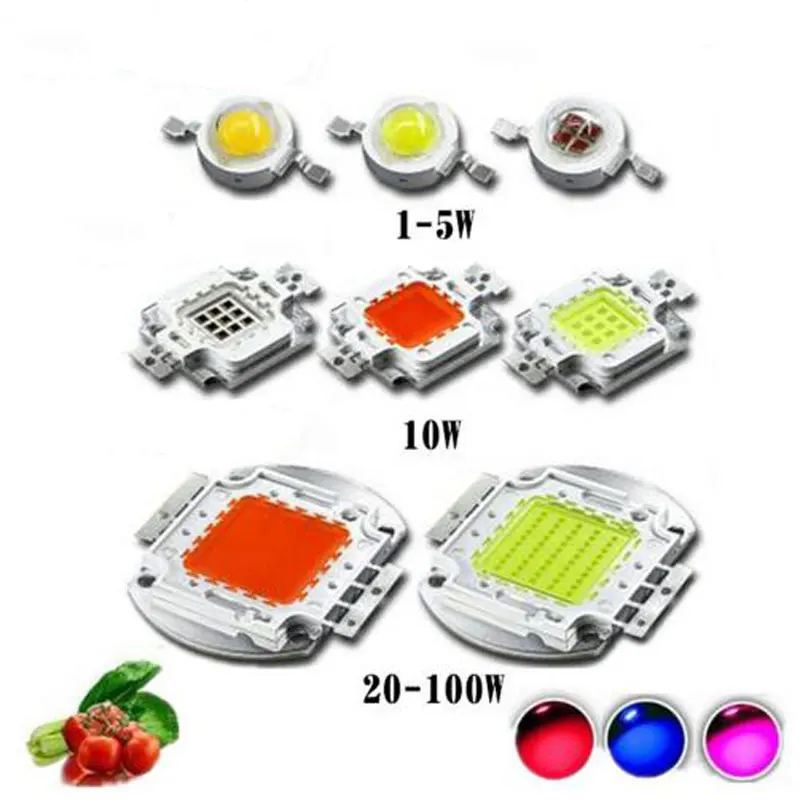Особенности: Светодиодный светильник высокой мощности: Чип: Epistar/35mil,45mil Номинальная мощность: 1 Вт, 3 Вт, 5 Вт, 10 Вт, 20 Вт, 30 Вт, 50 Вт, 100 Вт, 150 Вт Цвета: розовый, синий, красный, темно-красный, королевский синий, УФ, ИК Вес: 3 Вт 5 Вт (0,6 г),10 Вт (5,2 г), 20W-100W (27,5 г) Материал: два (2) золотых провода и медные скобы Функция: рост растений, способствует фотосинтезу, выращиванию овощей и фруктов, отверждению и т. Д. Наш светодиодный чип будет работать более 50000 часов, если рабочая температура меньше 60 °, необходимо работать с радиаторами, поэтому не забудьте сделать превосходное рассеивание тепла для Светодиодный s