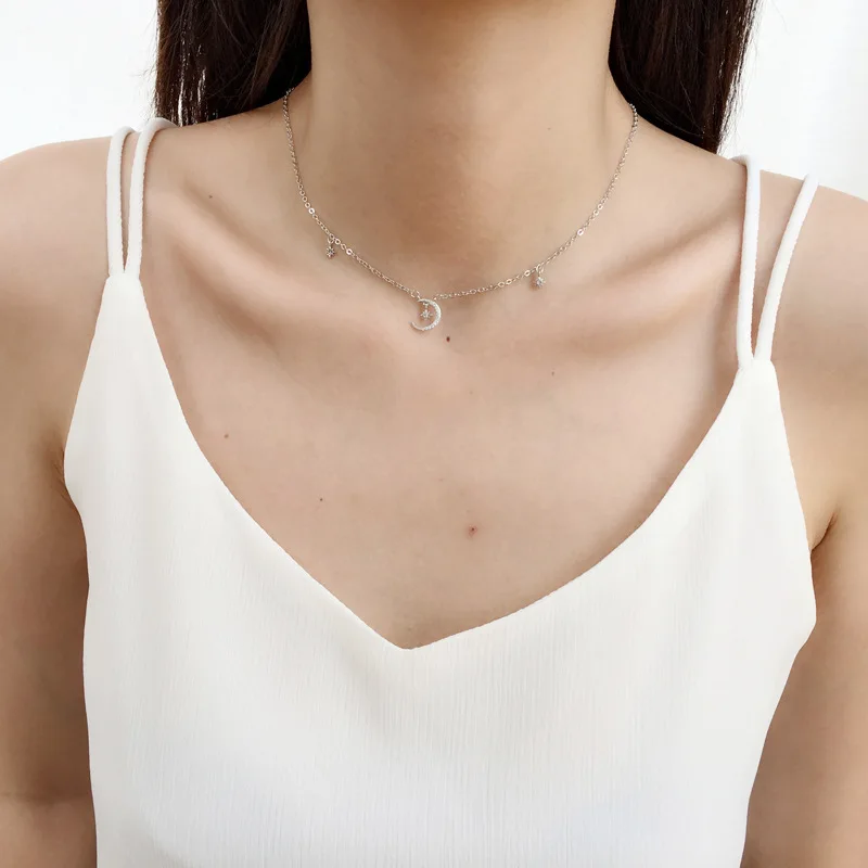 Новое креативное ювелирное изделие из стерлингового серебра 925 пробы с цирконием AAA, кулоны с Луной и звездой, ожерелья для женщин, простая цепочка-чокер, ожерелье, высокое качество Материал: Кристальное серебро Состояние: 100% новый бренд Повод: вечерние/Свадебные/Помолвочные/День рождения/День Святого Валентина/День Матери Размер подвески: как показано на рисунке