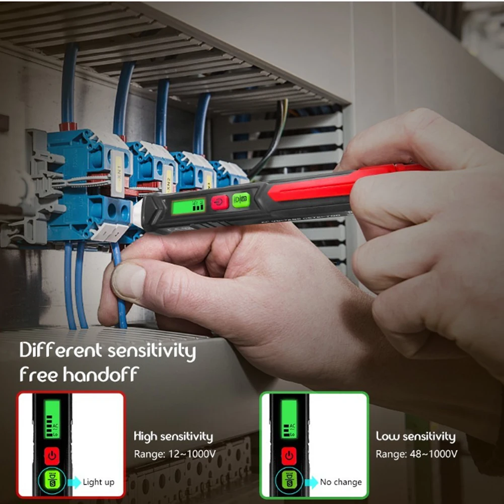 Поставьте тестовую головку ручки близко к объекту, чтобы быть протестированным, например, аналоговый бар, быстрый сигнал зуммер, дисплей ярко-красная подсветка, указывая, что протестированная линия-это Null провод.
