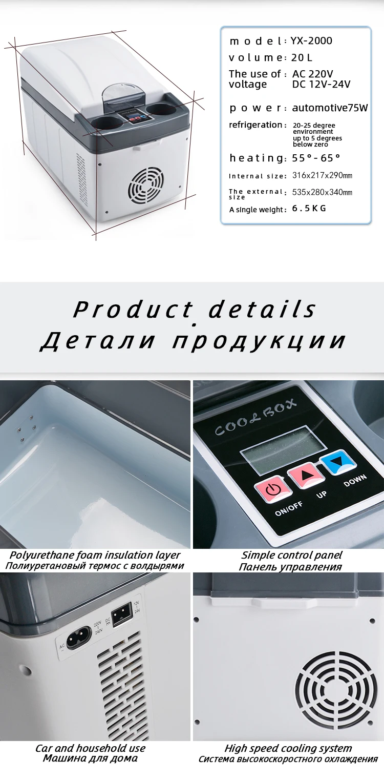 This is a portable 19L refrigerator It can be used in the car home and field.The temperature can be reached -5℃to +65℃,Using high quality materials and durable.