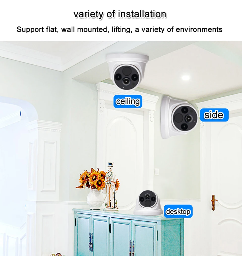 Поддерживает как Wi-Fi, так и проводной режим; Поддержка обнаружения движения и оповещения по электронной почте и нажатия приложения; Поддержка мобильного видеонаблюдения (iOS,android) Поддержка облачного сервиса, проникновения в сеть, информации о тревоге, нажатия на телефон и т. Д. Поддержка ONVIF, может работать с третьей вечерние NVR!