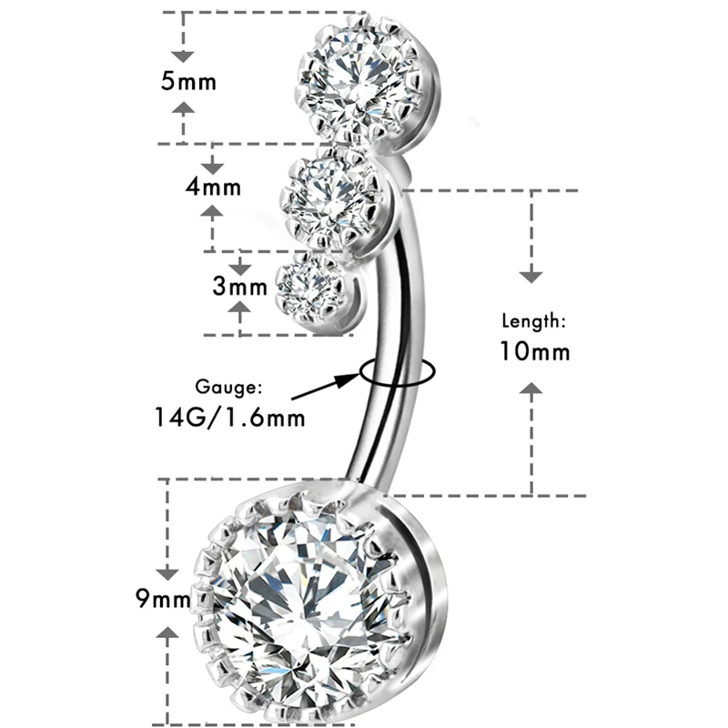 1 шт тело панк хирургическая сталь пупка круглая кристальная пупка пирсинг ювелирные изделия