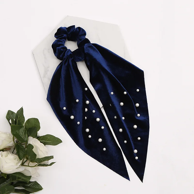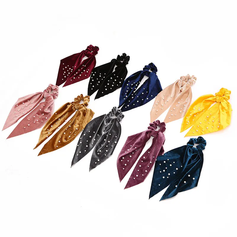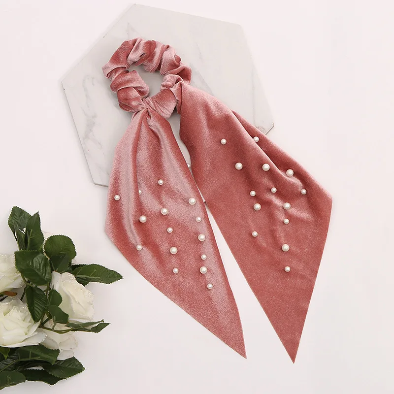 Мягкая бархатная резинка, Длинные растяжки, бант, жемчуг, эластичный хвост, веревка для волос