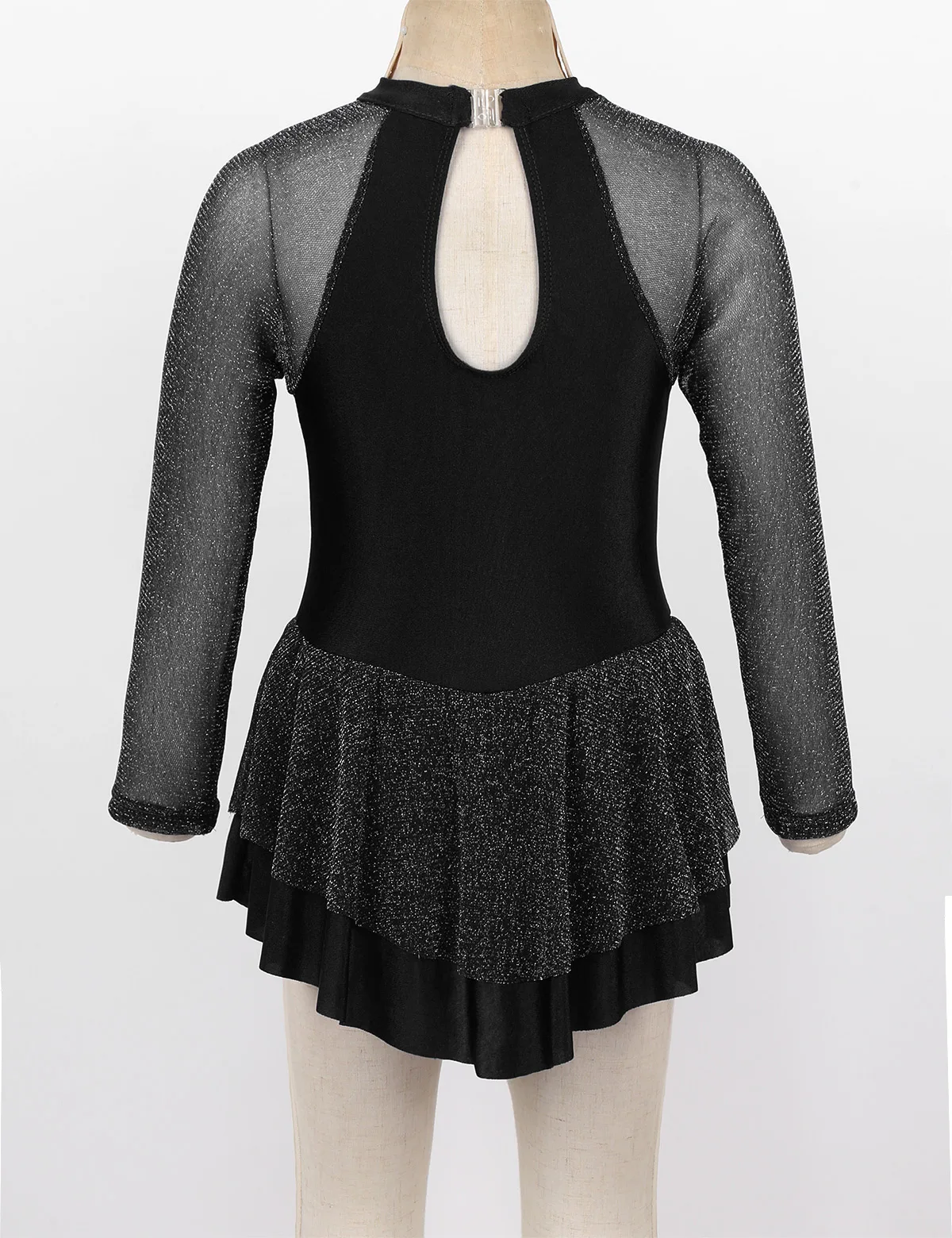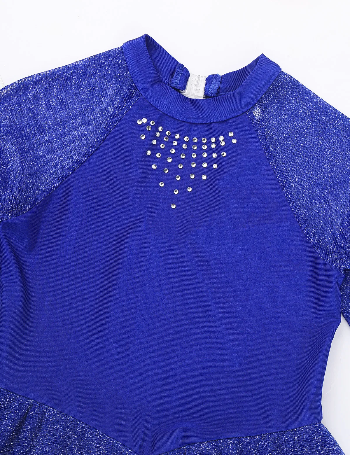 Блестящая прозрачная одежда с длинными рукавами, ложная горловина с застежкой. Спереди с блестящими стразами. Вырез на спине. Мягкая ткань, дышащая и удобная в носке.