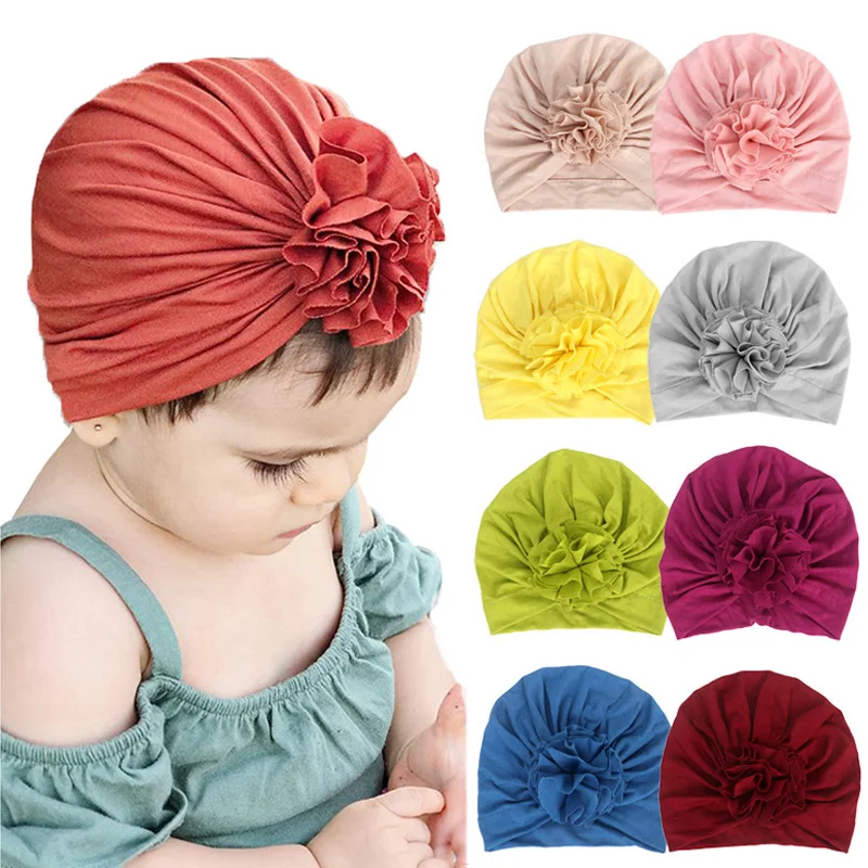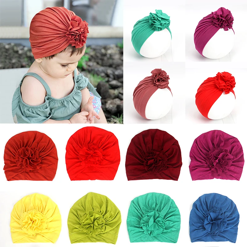 Детская плиссированная шляпа с цветочным рисунком тюрбан из хлопка реквизит для фотосъемки младенцев детская шапочка