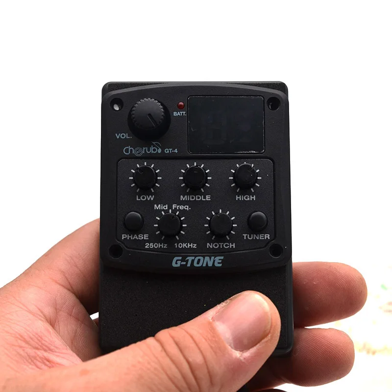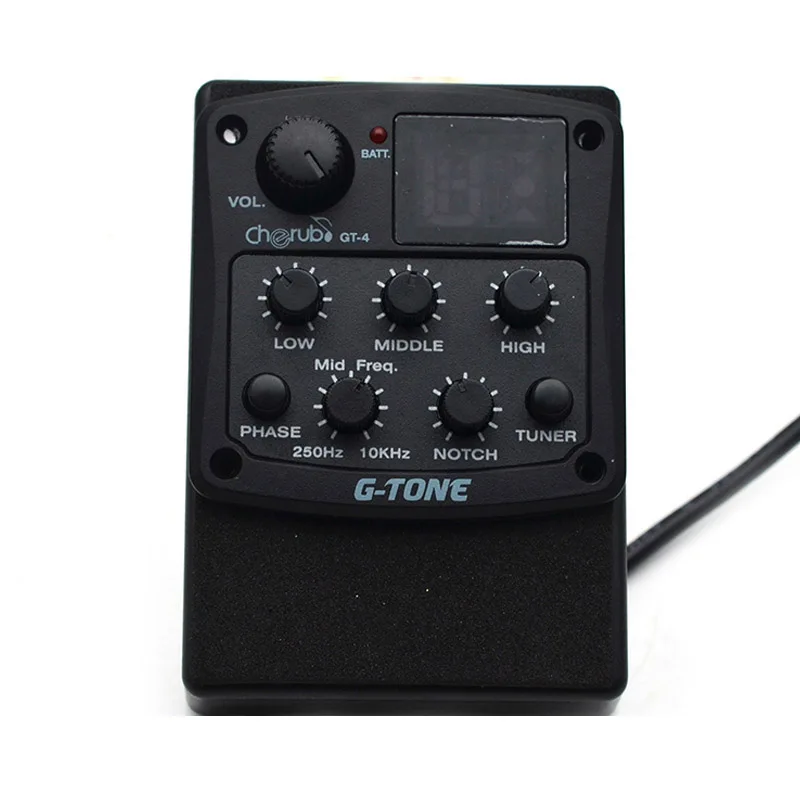 GT-4 имеет 3 полосным эквалайзером. Поверните низкую/среднюю/высокую для регулировки низкой/средней/высокой частоты