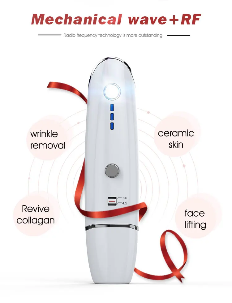 Радар V-образная резьба-это ручка HIFU для лифтинга лица, удаления морщин, подтяжки кожи, формы лица, формы шеи... Это косметическая машина для домашнего использования нового дизайна, основанная на технологии механической волны и радиочастотного принципа. Обладает эффектом лицевого свинца, способствует регенерации слоя fascia и коллагена.