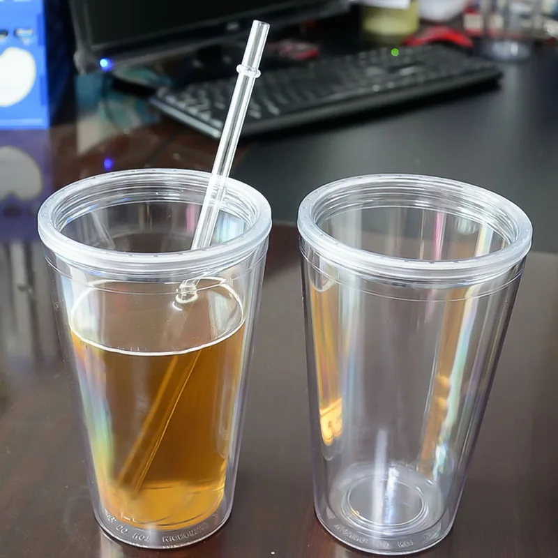 1. Новый пластиковый стакан с крышкой и соломинкой, большое отверстие для легкого наполнения кубиков льда или любых напитков.