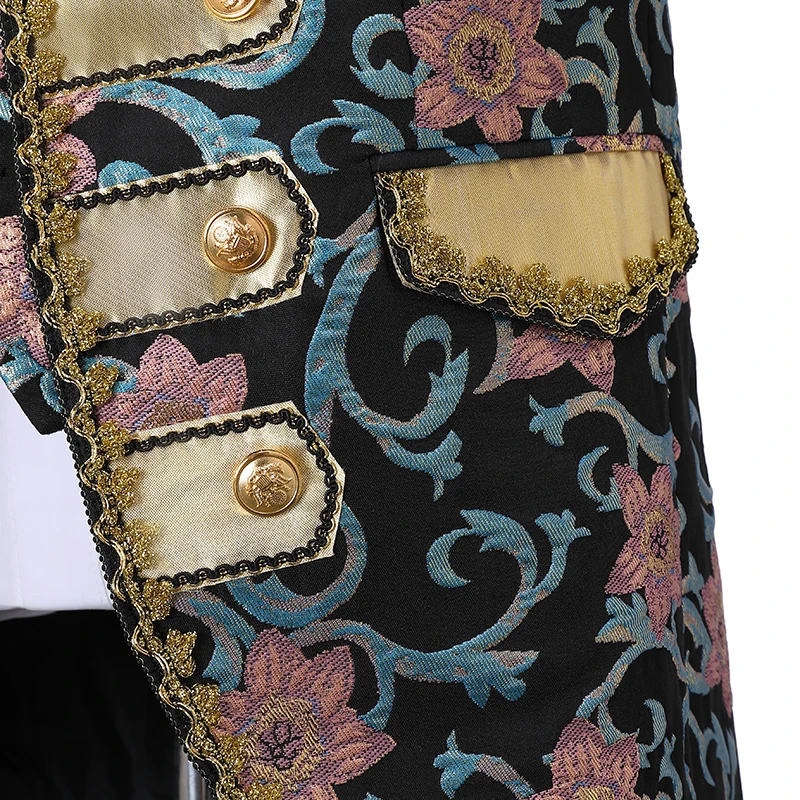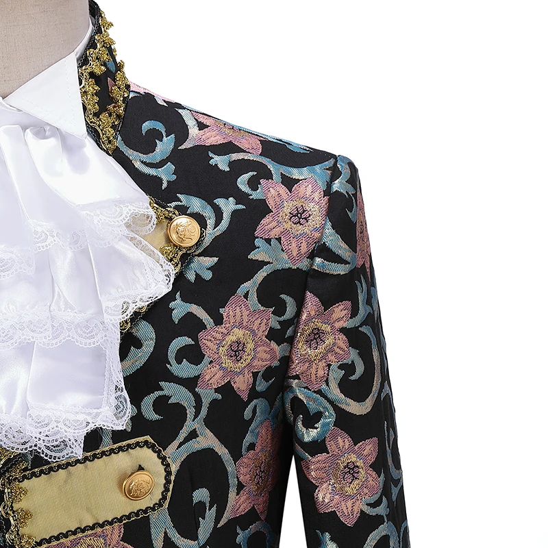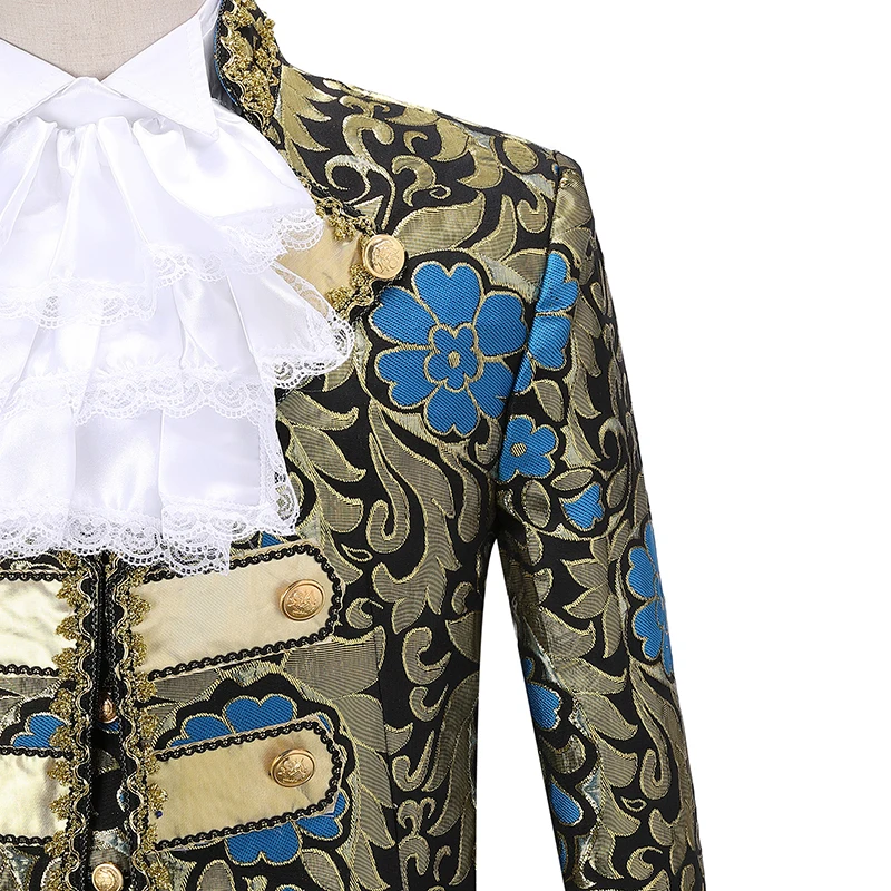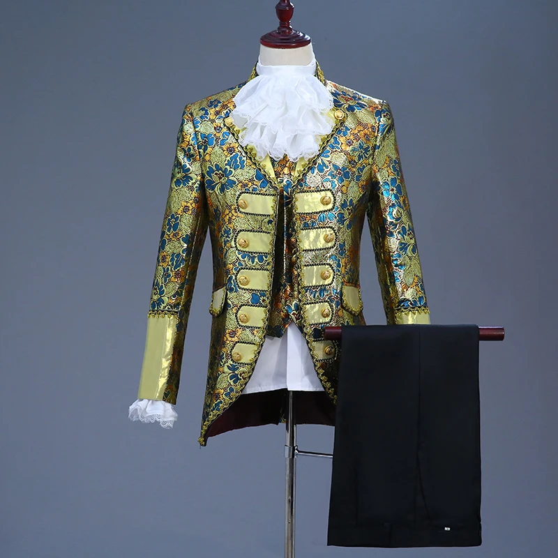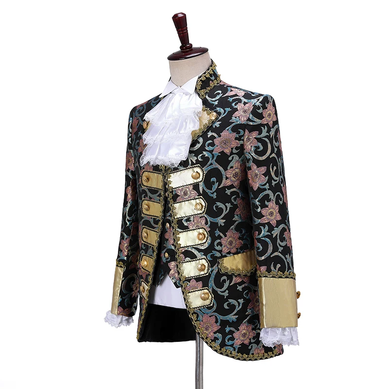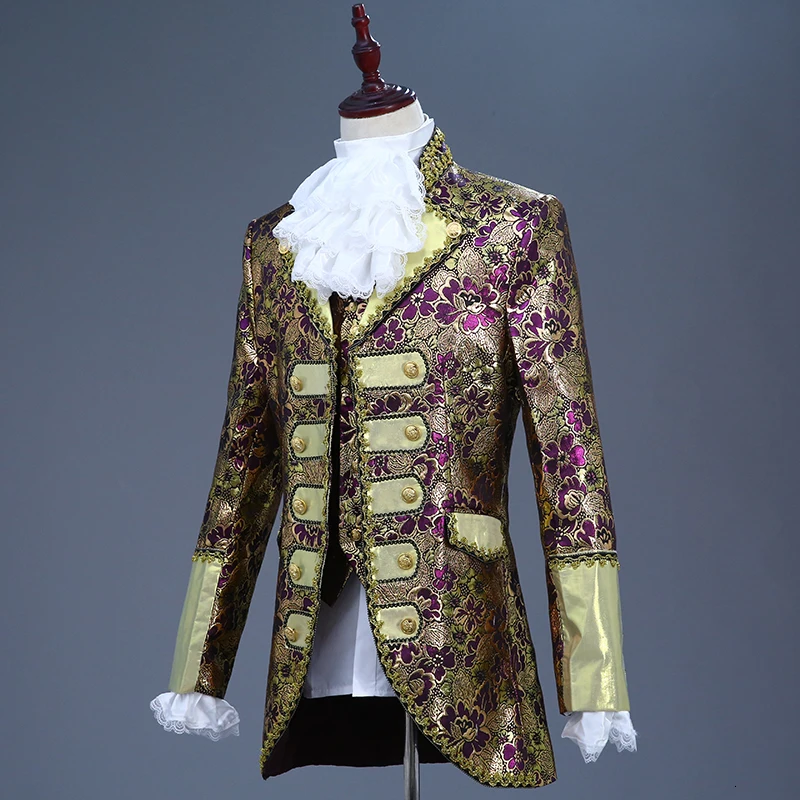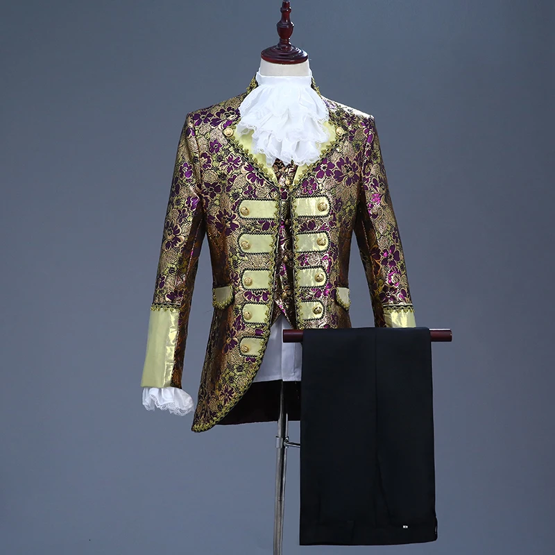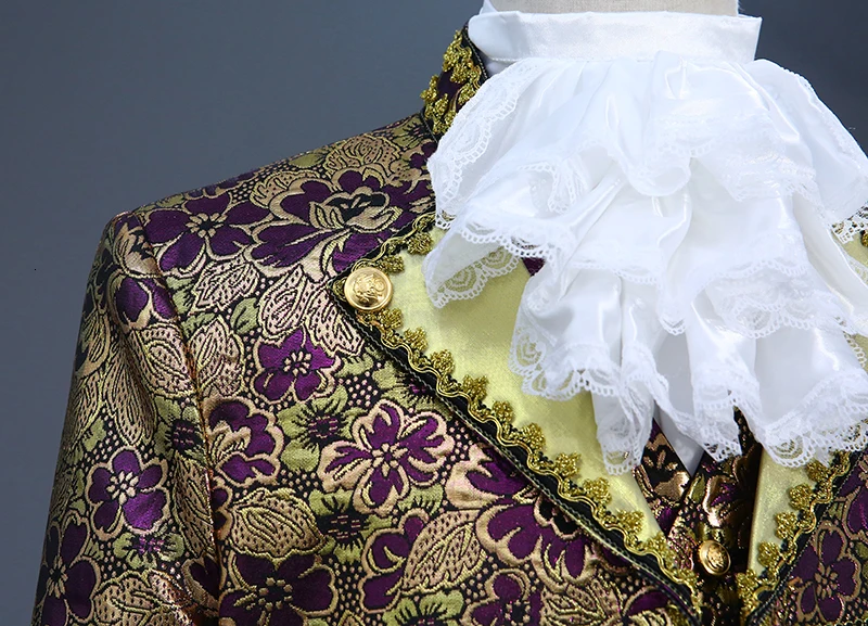 Включает: куртку, брюки, жилет, один съемный воротник и одну пару отстегивающихся рукавов.